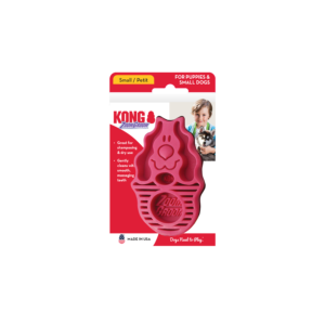 The KONG ZoomGroom™ helps make it easier to get your dogs clean. While shampooing use the ZoomGroom™ to clean your dogs’ coat. The 3/4 inch rubber fingers reach through the coat to massage the skin, stimulating capillaries and natural oil production leading to a healthy coat for your dog.
