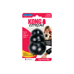 The KONG Extreme dog toy represents the most durable strength of KONG rubber. Designed for the toughest of chewers, the KONG Extreme offers enrichment and helps satisfy dogs’ instinctual needs. The KONG unique, ultra-durable, natural rubber formula is designed for determined chewers, while the erratic bounce fulfills a dog’s need to play. Want to extend play time? Be sure to stuff with tempting bits of kibble and entice with a dash of peanut butter.
