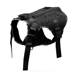 Barkbutler x Whoof Whoof Tactical Harness is a fully padded large dog military harness. It also has no choke design, spreading the pressure evenly throughout the chest rather than solely on the neck. Soft breathable cushioning provides much comfort and coat friendliness for the dog. Reflective threading provides better visibility. Safe locks keep the snap release buckle in place. Heavy duty D- rings promote durability. Adjustable points ensure a snug and perfect fit. Dedicated Hook and Loop Panel for badges. Hand wash is recommended to get tough to reach places.