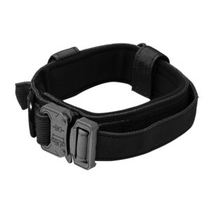 Barkbutler x Whoof Whoof Tactical Collar is a fully padded military collar. Soft breathable cushioning provides much comfort and coat friendliness for the dog. Safe locks keep the snap release buckle in place. Heavy duty D- rings promote durability. Adjustable points ensure a snug and perfect fit. Dedicated Hook and Loop Panel for badges. 1000D Reinforced Nylon Fabric ensures no breakage or degradation after long time use and tug.