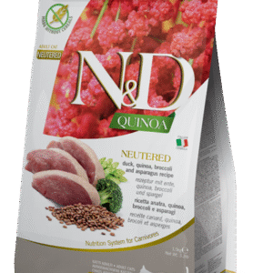 Unlock the power of N&D Quinoa Neutered, the ultimate formula for cats. Scientifically formulated for cat that have been spayed or neutered and helps contrast the tendency to overweight, while ensuring optimal nutrition and satisfaction.