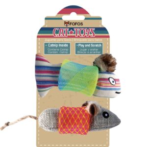 Catnip is a plant related to mint and contains an essential oil called nepetalactone that is known to cause euphoric, calming, and relaxing effects on cats. Catnip in small doses is completely safe, non-addictive for your kitten as the effects last about 10 mins for most cats. Fofos Tiny Twin Mouse are a set of 3 cute cat playing toys filled with imported US grade catnip dried leaves and grass powder. These interactive toys allow your cat to chew, swat, nip, play, and even promote harmless biting and scratching. Fun engaging cat toys give your cat a mouse chase-like feeling ensuring good physical stimulation while the catnips give them a calm and relaxing experience. Ideal for small pet kittens above 6 months of age as well as for older cats of Persian and other breeds as well.