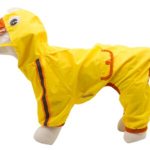 Made from lightweight, waterproof high-quality TPU material along with the mesh coating inside, this dog raincoat provides complete protection to your pet from the rain. A leash opening for easy access to take off or put on the leash with a cover that prevents water from entering. The reflective strip provides safety especially during walks or travel at night The transparent hooded design of this jacket provides complete head protection and visibility and the four-legged elastic cuffs coverings cover all 4 of your dog’s legs and prevent your dog from getting wet and splashed by the rain. The elastic fit & buttons help secure the raincoat & keep it in place and are easy to carry and convenient to travel with. To choose the right fit we recommend you measure your pet. This ensures that your pet is comfortable and has enough space while wearing the raincoat. Length measurements to be taken from base of hood to longest point on coat | S size fits pets 26cm in length| M size fits pets 32 cm in length | Large fits pets 42 cm in length | X-Large fits pets 48 cm in length. This raincoat is recommended for large-sized dogs like labradors, golden retrievers, German shepherds, huskies etc