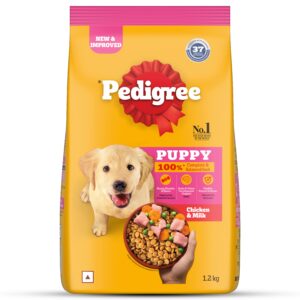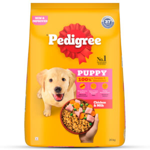 Pedigree provides 100% complete and balanced dog food for puppies to support their well-being. Pedigree Puppy Dry Dog Food, Chicken & Milk, is a wholesome meal containing 37 essential nutrients. The goodness of quality ingredients, including chicken and milk, blends into a tasty and nutritious diet for your little furry friend. This puppy dog food is developed with experts. When fed as recommended (refer to the back of the pack for feeding guidelines), this dry dog food supports strong muscles & bones (High Quality Protein & Calcium), brain & vision development (DHA) and healthy natural defense (Vitamin E & Selenium). At Pedigree, recipes are developed based on research from the Waltham Centre for Pet Nutrition. Every product from Pedigree meets the requirements laid down by NRC 2006 of the U.S. National Academy of Science. Give your furry companion healthy and lip-smacking mealtimes with Pedigree.