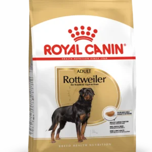Suitable for Rottweilers aged 18 months old and over, ROYAL CANIN® Rottweiler Adult is specially formulated with all the nutritional needs of your adult dog in mind. ROYAL CANIN® Rottweiler Adult contains specific nutrients – such as taurine, EPA, and DHA – that help to support healthy cardiac function.ROYAL CANIN® Rottweiler Adult also contributes to the maintenance of optimal muscle mass and an ideal bodyweight, thanks to an adapted protein content and the inclusion of L-Carnitine. This diet – rationed appropriately to regulate proper food intake – should be fed in conjunction with an effective exercise routine.Whether working or just on a walk with its owner, the Rottweiler is always active and enthusiastic, which means it requires nutrients that support the health of its joints and bones.This is the reason ROYAL CANIN® Rottweiler Adult has been enriched with EPA and DHA – these omega-3 fatty acids help to support your dog’s healthy bones and joints.What’s more, the exclusive kibble in ROYAL CANIN® Rottweiler Adult is specially designed to make it easier for your dog to pick up, it also encourages it to chew more thoroughly to help increase the feeling of fullness and maintain an ideal weight.