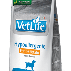 Reduction of the occurrence of adverse reactions to foods. Farmina Vet Life Hypoallergenic Fish & Potato is a complete dietetic food for dogs formulated for the reduction of alimentary intolerance. It is also recommended as coadjuvant in the support of trophic function of the skin and of its appendages: eye, ear, anal sacks.