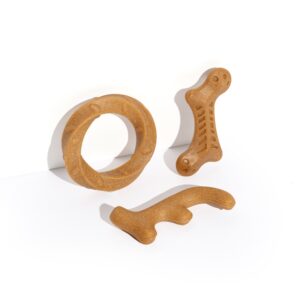 Fofos woodplay bone is a dog chew toy that is great for teeth and gums. This toy comes as a set of two toys that can help massage your dog’s gums and maintain good oral hygiene. This toy contains real wood and acts as a perfect furniture substitute. bone toys such as this allow your dog to chew, bite, fetch and play while getting the right amount of exercise and also make playtime interactive. This toy is ideal for small-medium dogs (5-20kg) of various breeds such as dachshund, pom, spitz, labrador etc This toy is strong but not indestructible and is best suited for pet dogs that have moderate chewing, and playing style. Not recommended for aggressive chewers.