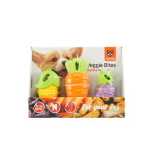 Fofos Vegi-bites Corn is an engaging screaming squeaker dog toy that generates a loud squeaky noise. This fun toy can float in water and can be used during bath times to distract your pet for a hassle-free experience. This dog toy has a bumpy texture and is good for massaging teeth and gums. The green top of this toy is made from soft foam rubber and the bottom is made using durable TPR. Interactive dog toys such as this allow your dog to chew, fetch, and bite on them while getting the right amount of exercise. This toy is ideal for medium-large dogs (10-30kg) of various breeds such as dachshund, pom, spitz, etc. This toy is strong but not indestructible and is best suited for pet dogs that have moderate chewing, and fetch playing style. Not recommended for aggressive chewers.