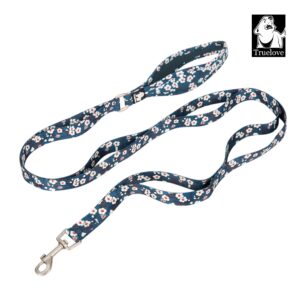 Barkbutler x Truelove Floral leash is one of the best, cute colourful leashes out there for walking your pet dog. Strong Pull Resistant Polyester & high load bearing capacity Zinc Alloy leash hook grants immense durability. The High-Density Webbing maintains longevity. There are 6 handles built-in to lead your doggy, the SBR padded & 2nd handle for controlled & comfortable walks, the 2 middle handles keep your dog closer which is helpful as a training tool or just as a shorter leash & the 2 shortest handles for maximum control in high tension situations to keep your baby safe. The overall leash is soft, light & tough which minimizes the chances of friction burns caused due to sudden, explosive movements. The Zinc Alloy leash clip fastens the leash to the harness/collar and makes an unbreakable bond which only comes undone when the owner chooses to. Looking for the perfect leash? Refer to our sizing chart in the product images section for the right pick. Matching harness options are available with this leash. Pro Tip: Does your dog pull? Connect the leash to the chest or front clip of a dog body harness and say goodbye to pulling.