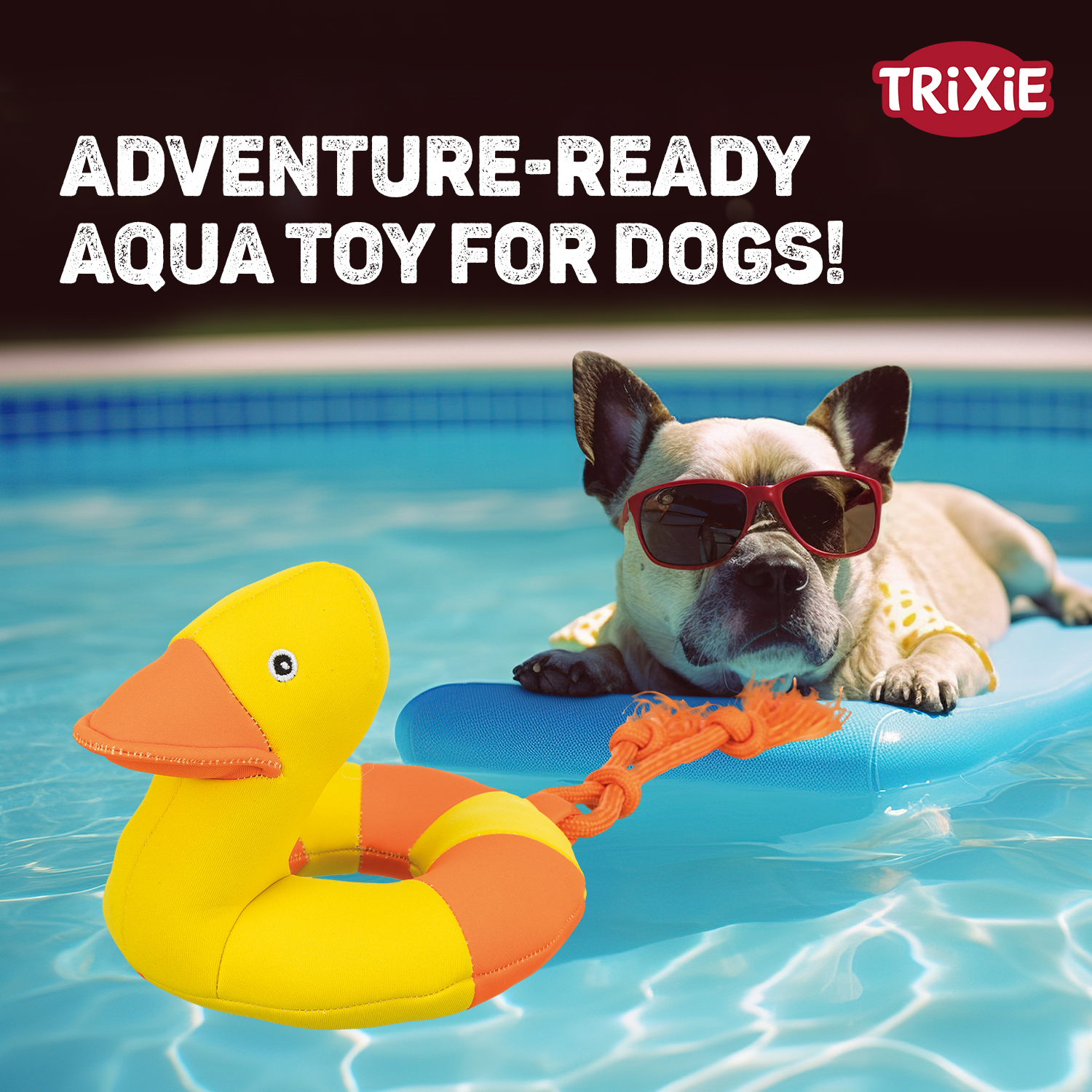 | A floating duck toy with a rope tail, perfect for water play and active fetchers. |
