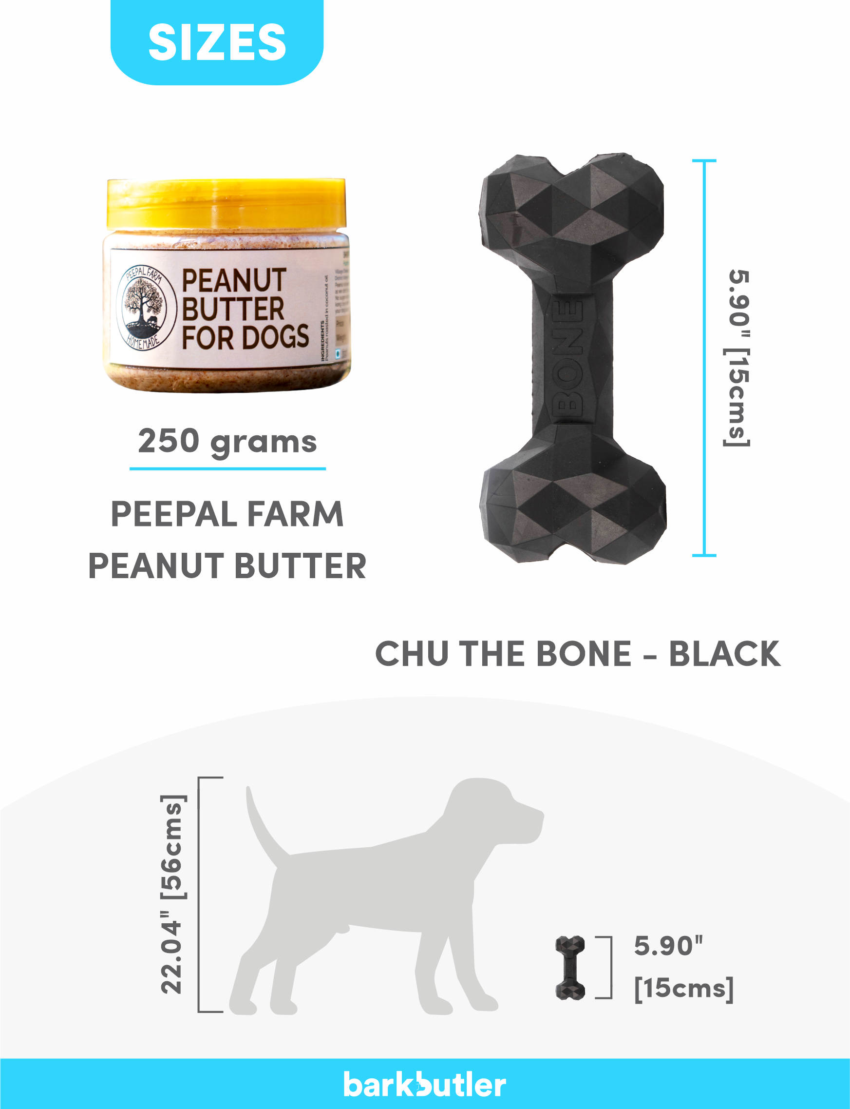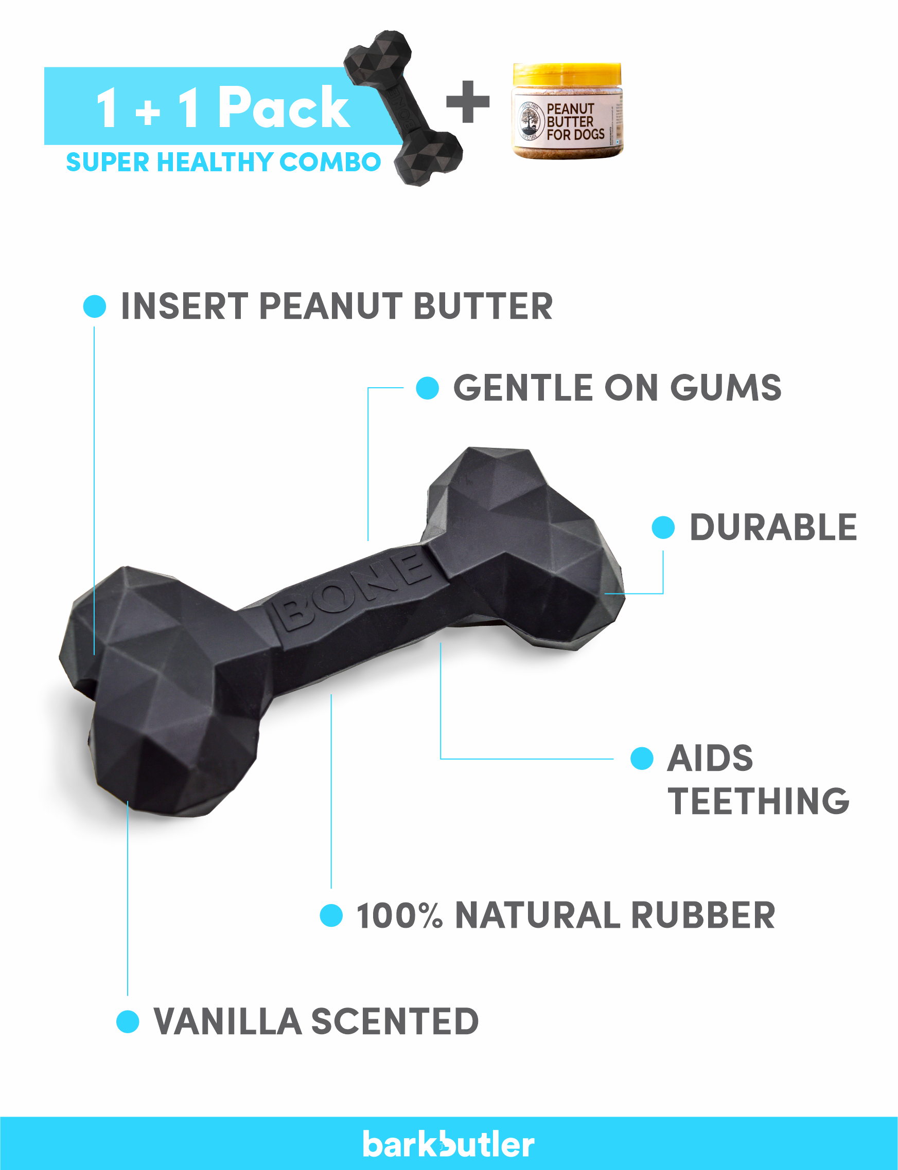 • Barkbutler Chu The Bone Dog Toy + Peepal Farm’s 100% Natural Vegan Peanut Butter(Black)