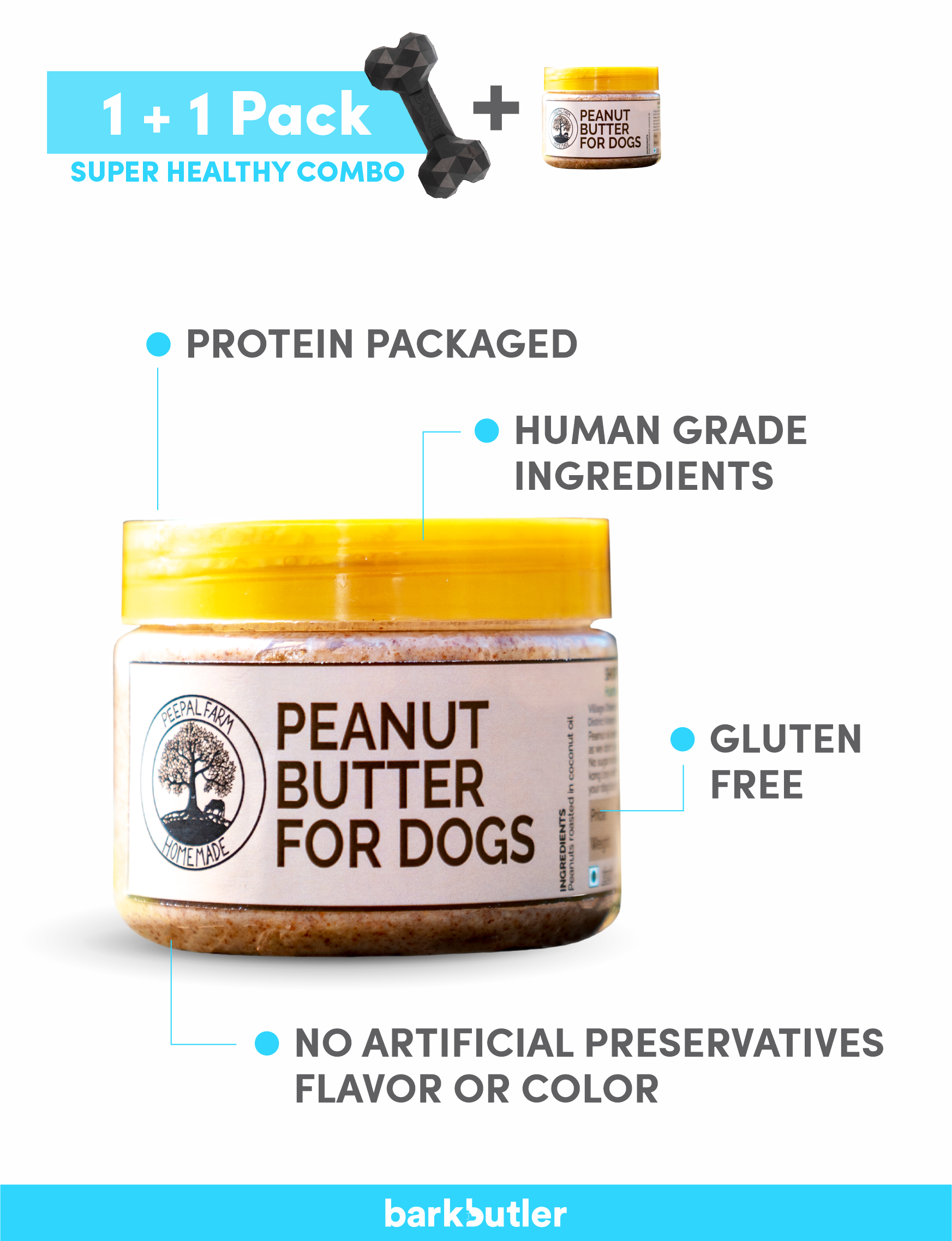 Barkbutler Chu The Bone Dog Toy + Peepal Farm’s 100% Natural Vegan Peanut Butter(Black)