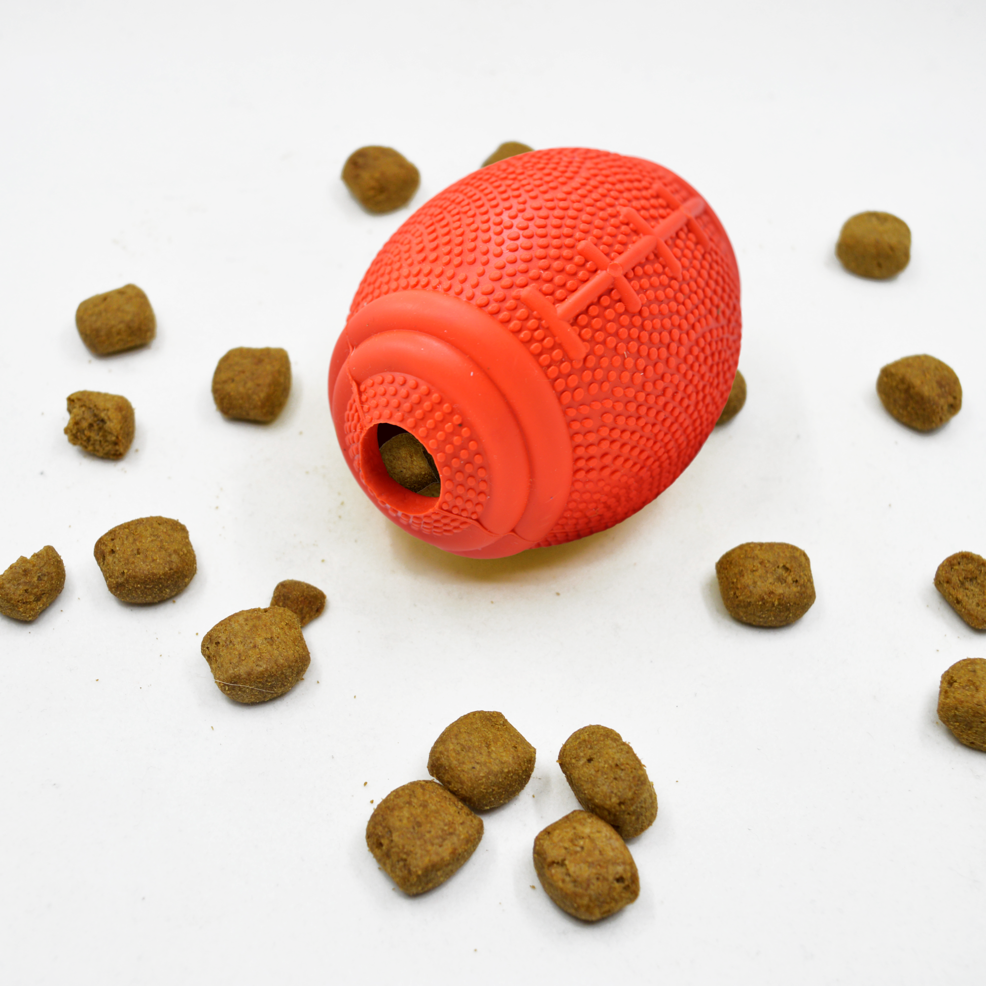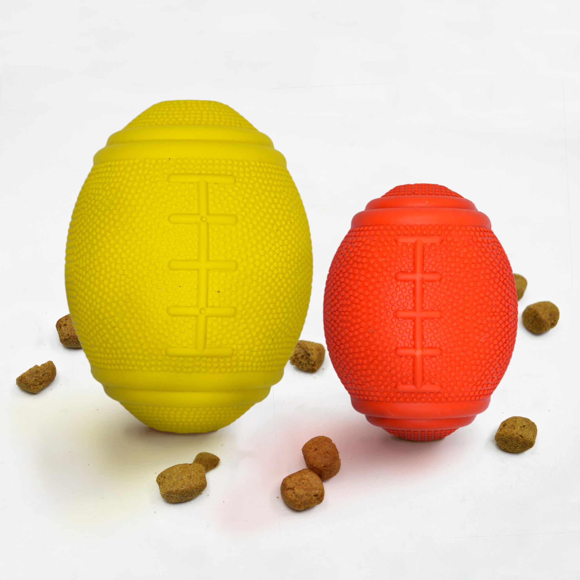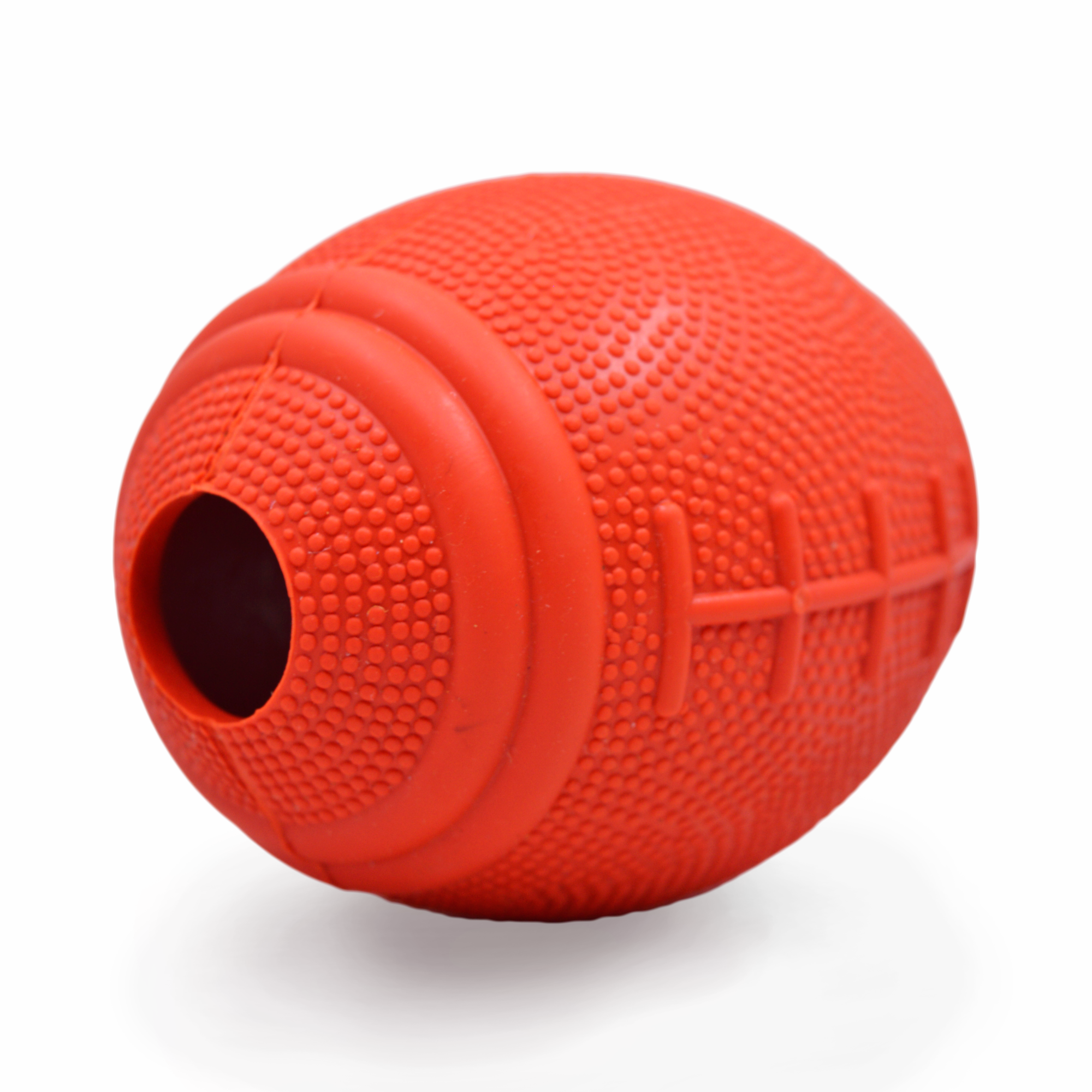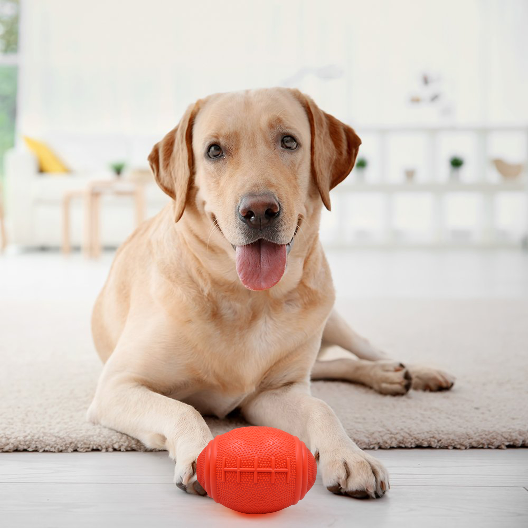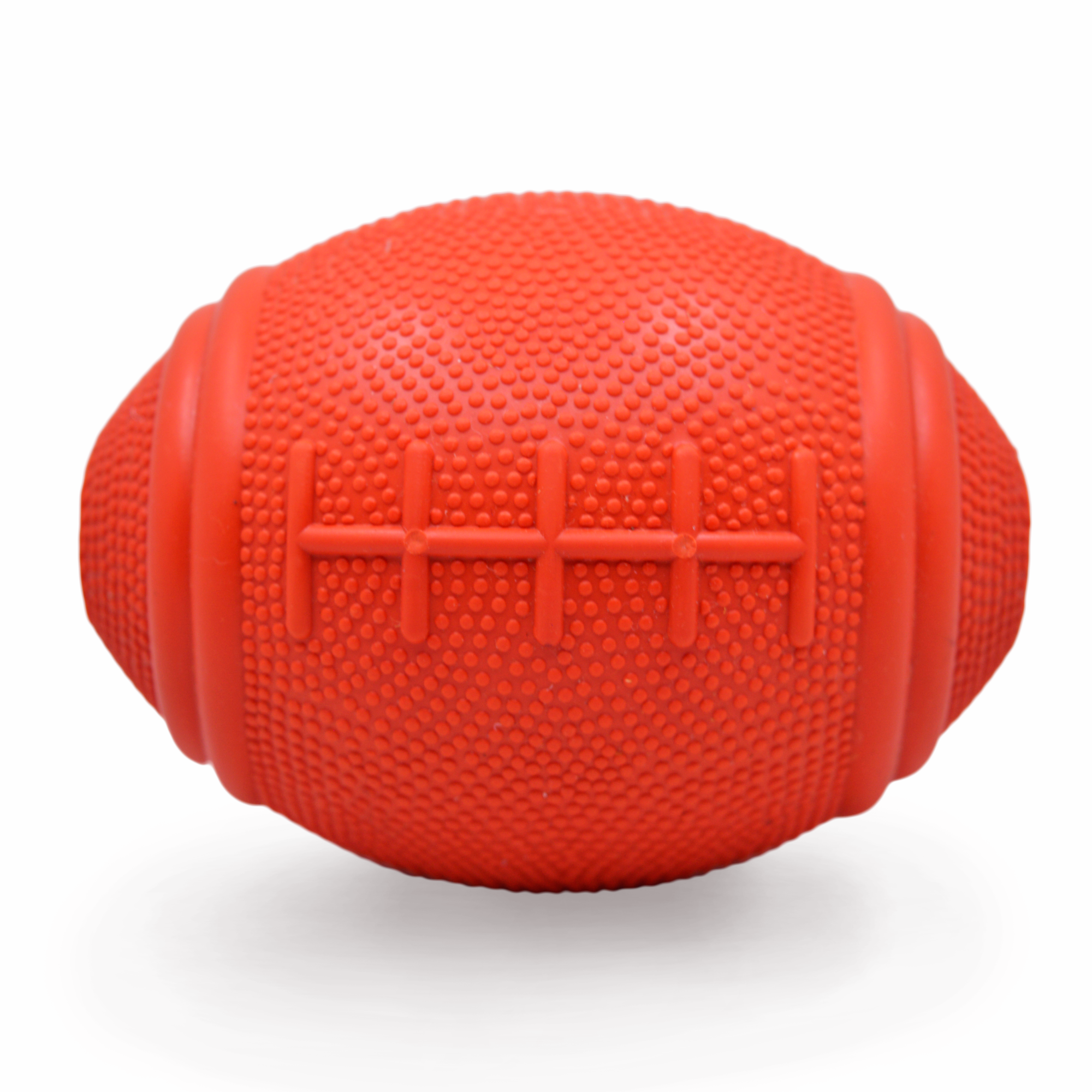 Barkbutler Basics – Just a fooball is a durable dog chew toy made from soft 100% natural rubber. It has an erratic bounce that makes playtime engaging for your puppy. Ball toys are perfect for a fun game of fetch, chase, and catch. This interactive toy is vanilla scented & treat-dispensing which means you can stuff food or treats inside the toy, keeping your dog busy and get the right amount of exercise. Fetching toys such as these are ideal for large dogs (20-30kg) of breeds such as Lab, Golden Retriever, German shepherd, Husky, etc. This toy is strong but not indestructible and is best suited for pet dogs that have aggressive chewing and fetch playing style. Not recommended for extremely aggressive chewers.
