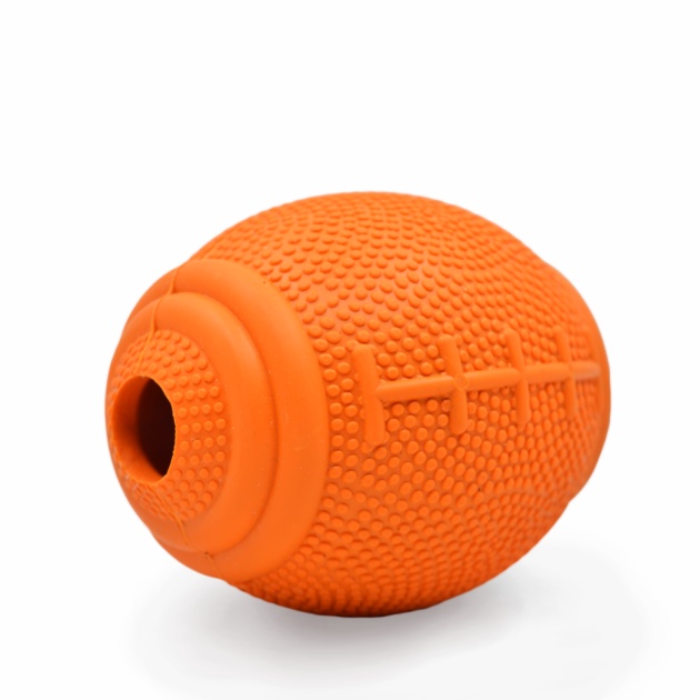 Barkbutler Basics – Just a fooball is a durable dog chew toy made from soft 100% natural rubber. It has an erratic bounce that makes playtime engaging for your puppy. Ball toys are perfect for a fun game of fetch, chase, and catch. This interactive toy is vanilla scented & treat-dispensing which means you can stuff food or treats inside the toy, keeping your dog busy and get the right amount of exercise. Fetching toys such as these are ideal for small-medium dogs (5-20kg) of breeds such as Shih Tzu, Beagle, Pug, spitz, dachshund, and Pom. This toy is strong but not indestructible and is best suited for pet dogs that have aggressive chewing and playing style. Not recommended for extremely aggressive chewers.
