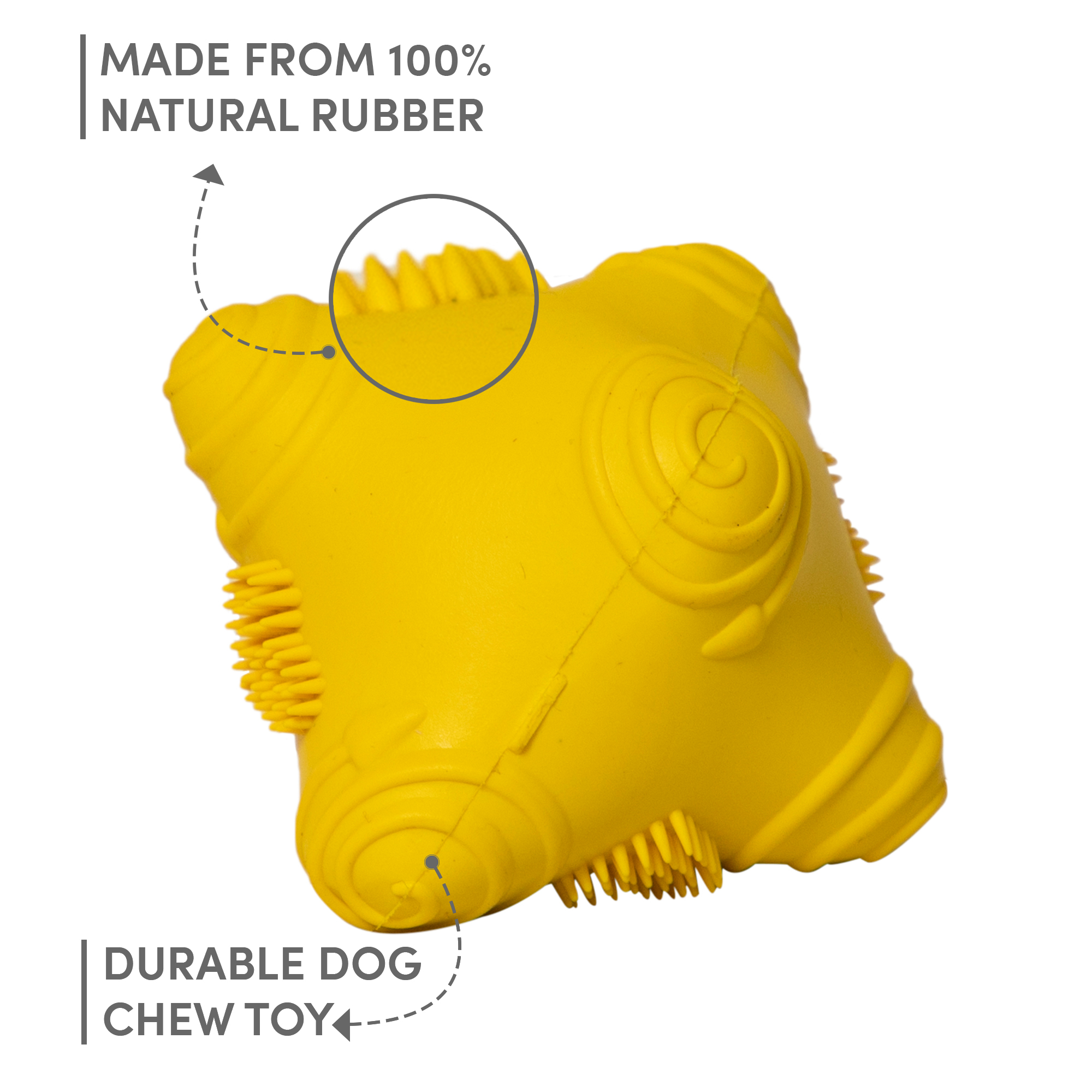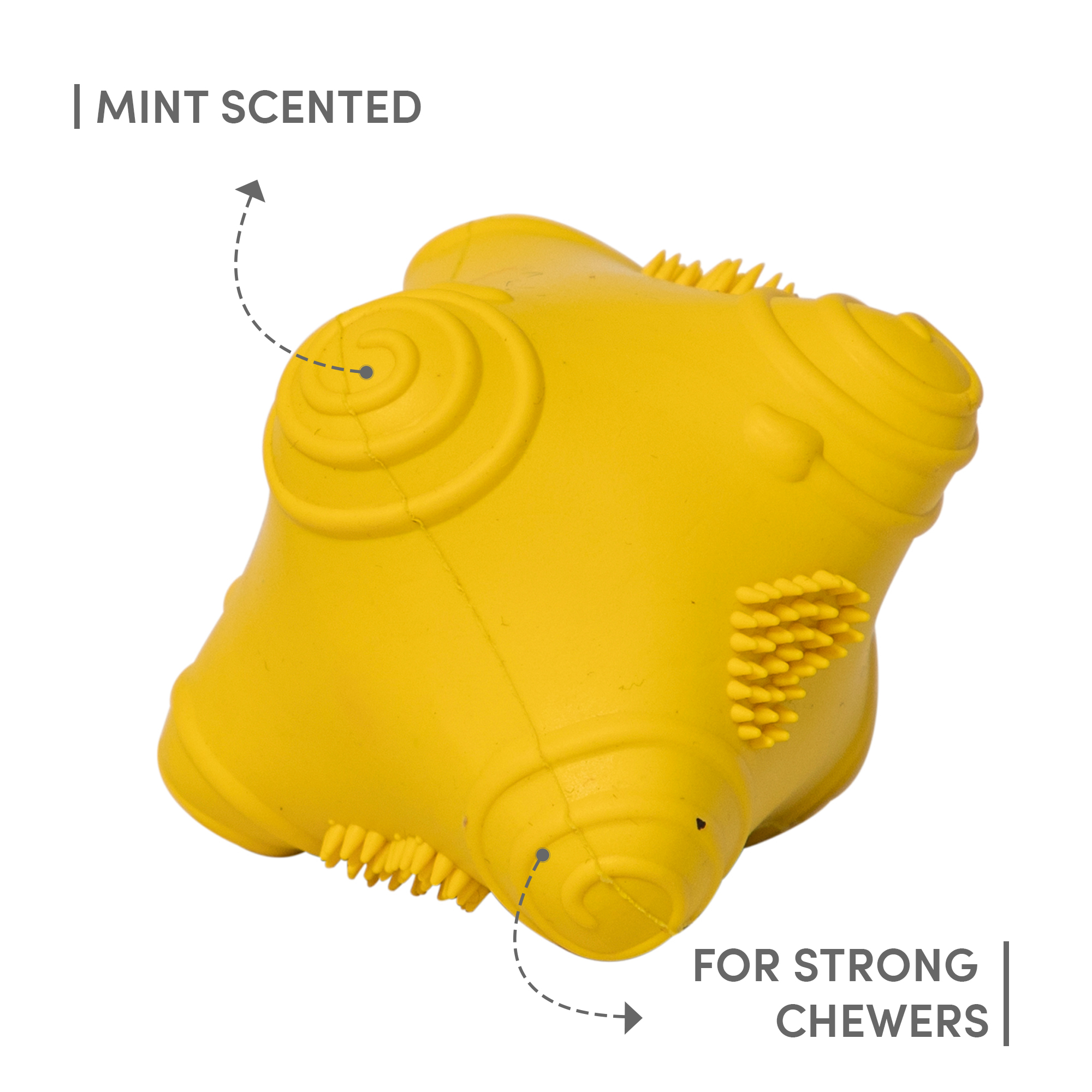 Barkbutler Just a Snitch is a durable dog chew toy made from 100% natural rubber. It has an erratic bounce that makes playtime engaging for your puppy. unidirectional ball toys are perfect for a fun game of fetch, chase, and catch. This interactive toy is mint scented. Fetching toys such as these are ideal for X-Small-Small dogs (0-10kg) of breeds such as Lab, Golden Retriever, German Shepherd, Husky, etc,. This toy is strong but not indestructible and is best suited for pet dogs that have aggressive chewing and fetch playing styles. Not recommended for extremely aggressive chewers.