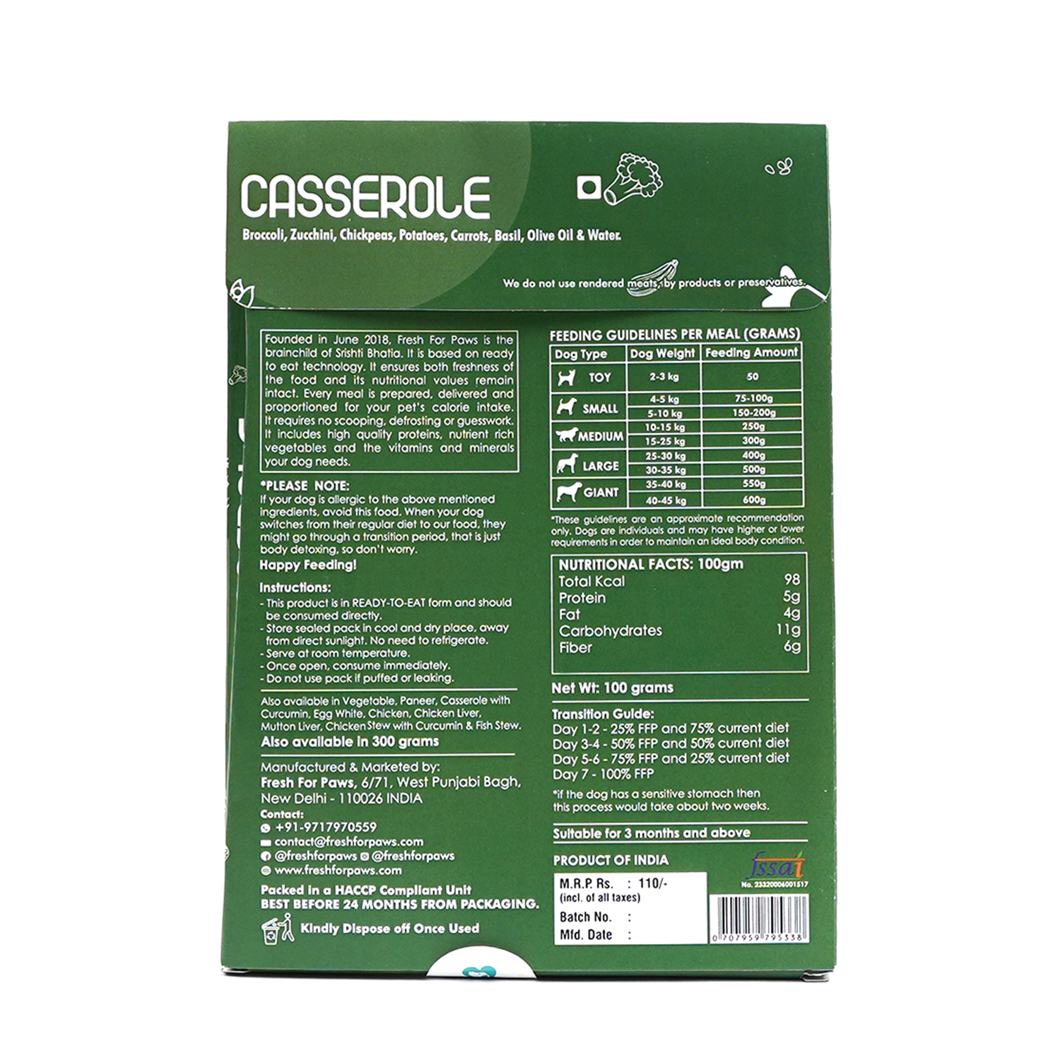 Delicious casserole stew and the goodness of veggies; Fresh for Paws packs a complete balanced diet for all your furry babies needs. Delicious home cooked meals made with the same ingredients you cook with. Wet food is better appreciated by dogs who do not drink water regularly. No preservatives or other toxic additives. Human grade food made by humans in a human food facility ensures that the treatment, to the pet and its food, is fair.