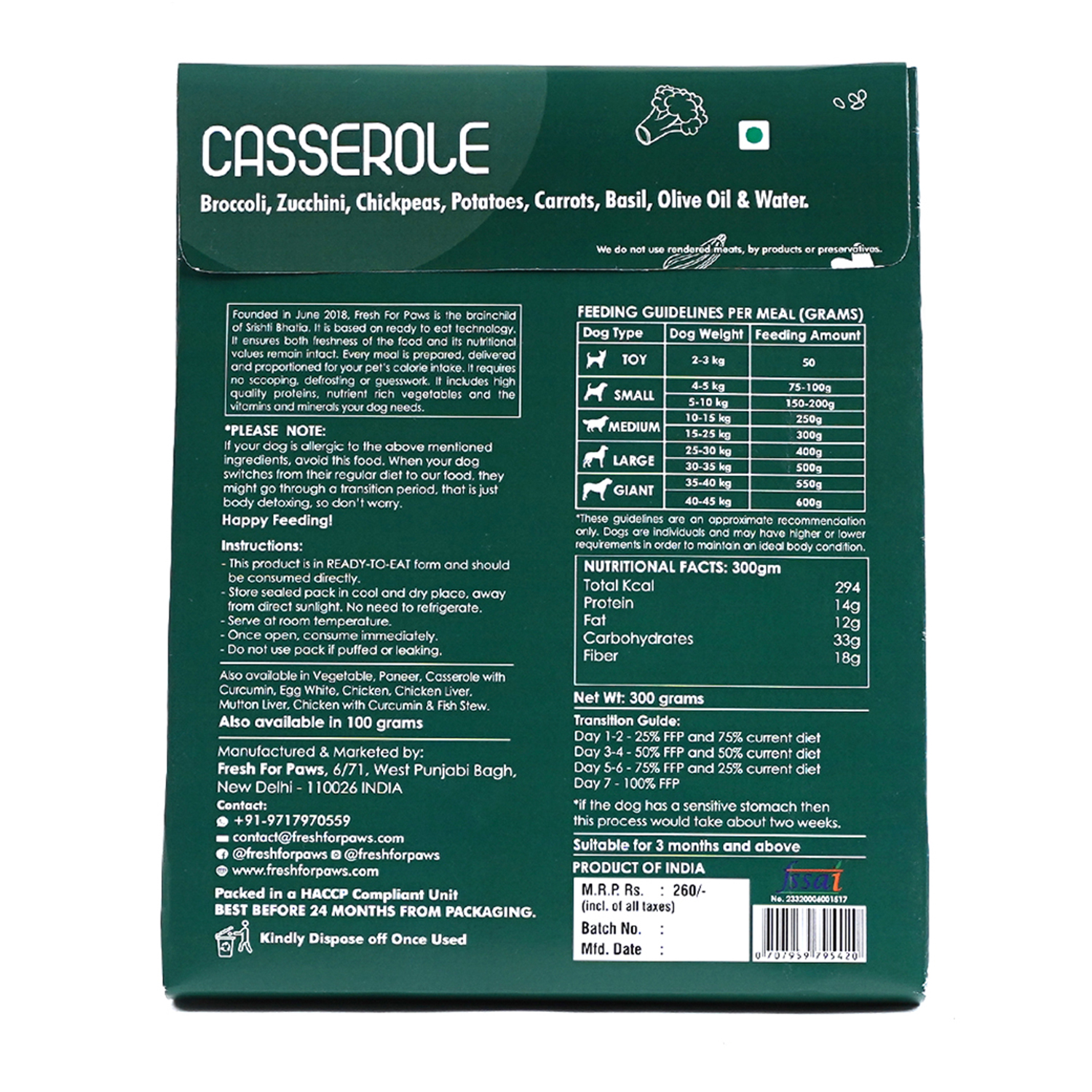 Barkbutler x Fresh for Paws Casserole Stew | 300 grams | Ready To Eat| High in Fibre | Assorted Veggies | Olive Oil |