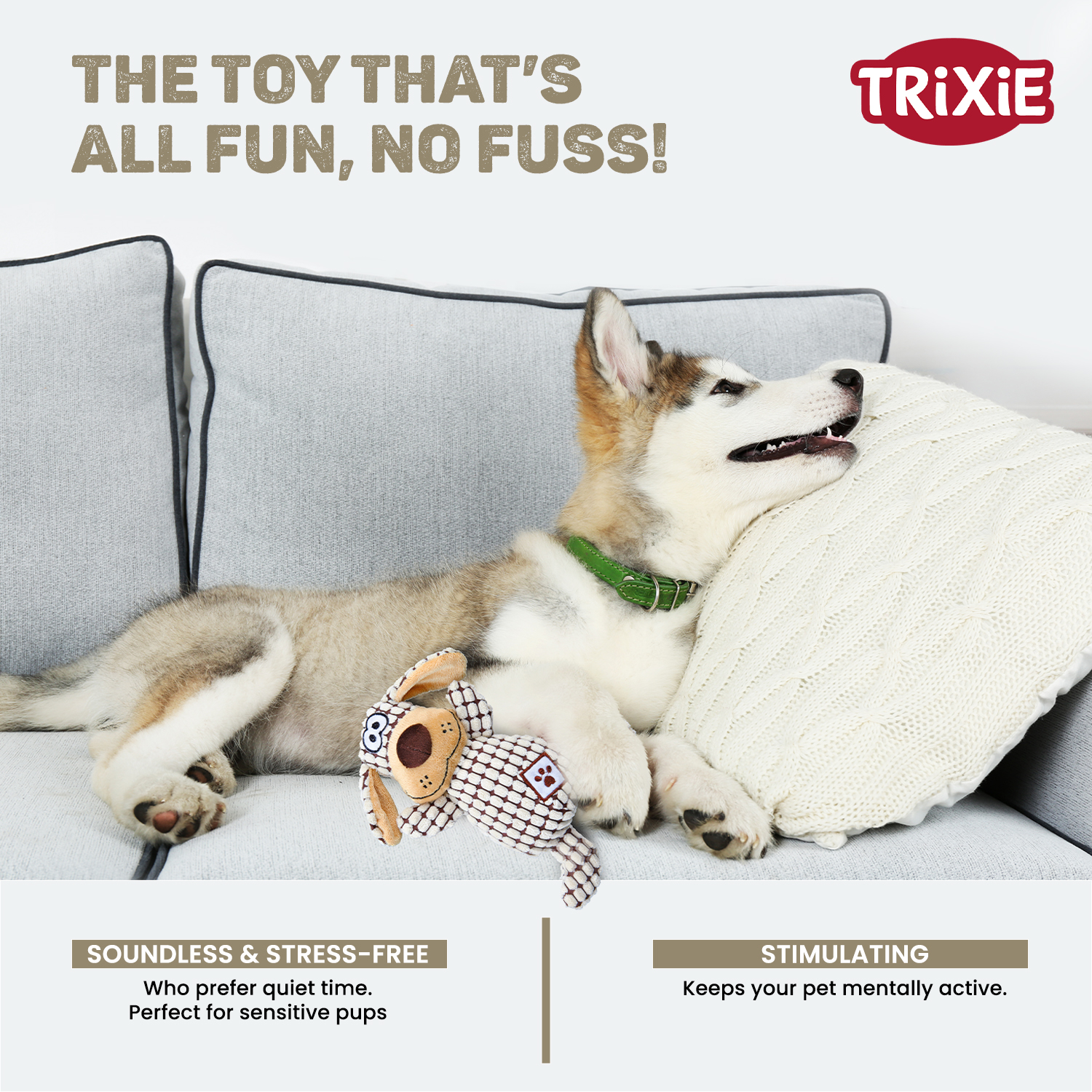 | A squeaker-free plush toy for dogs who prefer quiet cuddles and play. |