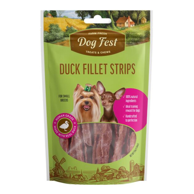 Dogfest Duck small dog breed treats are the perfect snack for your furry friend. Made with 100% natural and healthy ingredients, these treats are free from artificial flavors, colors, and preservatives. Our human-grade meat is sourced directly from farms and is the first ingredient, high in protein to provide your dog with energy. Ancestral to dogs, Duck is a tasty treat that will make your pet feel like royalty. Recommended for all small dog breeds, from Shih Tzus to beagles, these soft, chewy treats are perfect for smaller dog breeds. Find the best, imported, premium, and dried dog treats that are healthy, natural, and delicious.