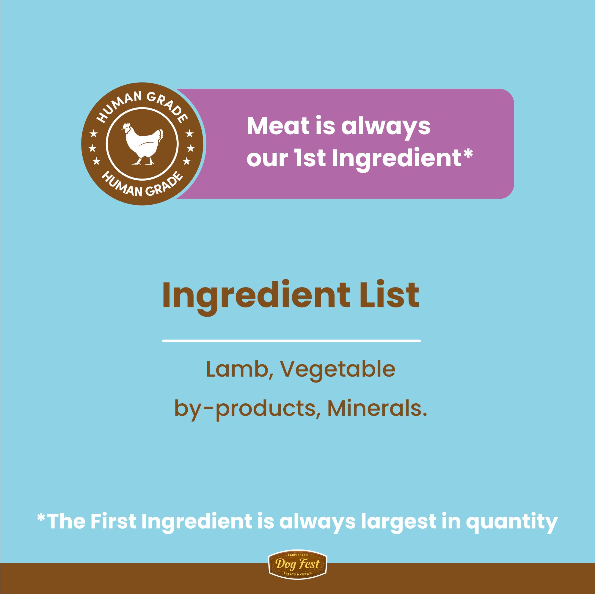 Dogfest Lamb slices puppy treats are the perfect snack for your furry friend. Made with 100% natural and healthy ingredients, these treats are free from artificial flavors, colors, and preservatives. Our human-grade meat is sourced directly from farms and is the first ingredient, high in protein to provide your dog with energy. Ancestral to dogs, lamb meat is a tasty treat that will make your pet feel like royalty. Recommended for all puppy breeds, from Shih Tzus to rottweilers, these soft, chewy treats are perfect for puppies. Find the best, imported, premium, and dried dog treats that are healthy, natural, and delicious.