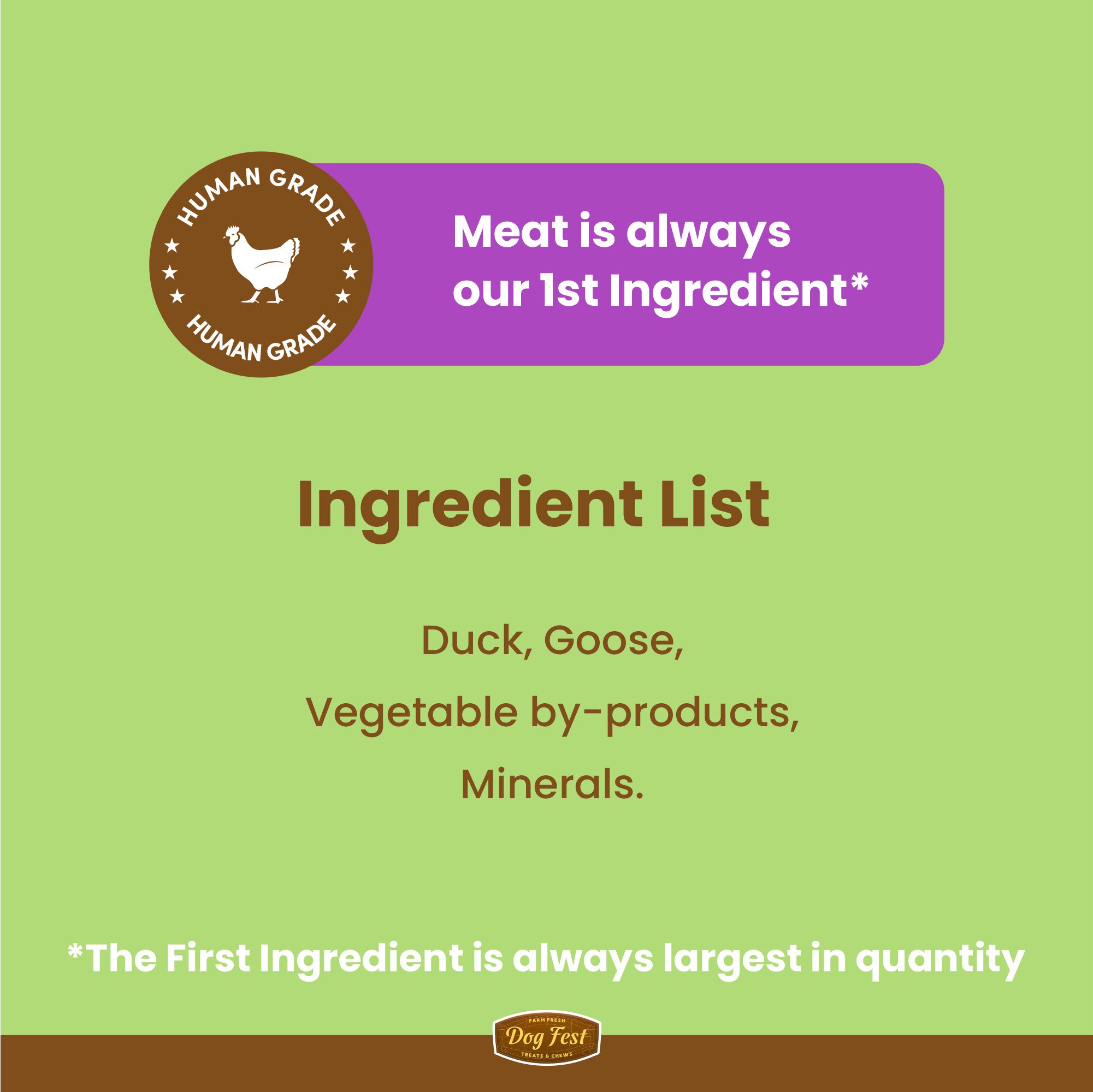 Dogfest Slices with Duck & Goose small dog breed treats are the perfect snack for your furry friend. Made with 100% natural and healthy ingredients, these treats are free from artificial flavors, colors, and preservatives. Our human-grade meat is sourced directly from farms and is the first ingredient, high in protein to provide your dog with energy. Ancestral to dogs, Duck & Goose are tasty treats that will make your pet feel like royalty. Recommended for all small dog breeds, from Shih Tzus to beagles, these soft, chewy treats are perfect for smaller dog breeds. Find the best, imported, premium, and dried dog treats that are healthy, natural, and delicious.