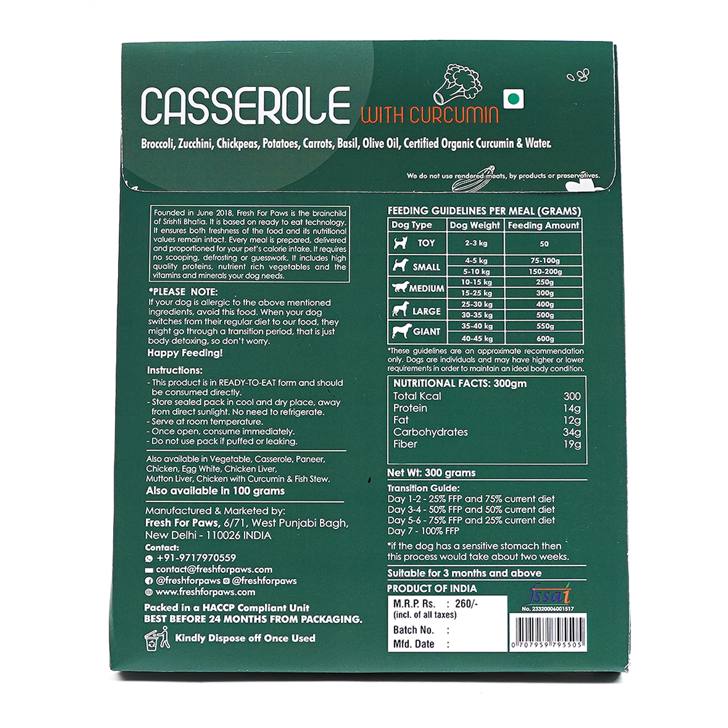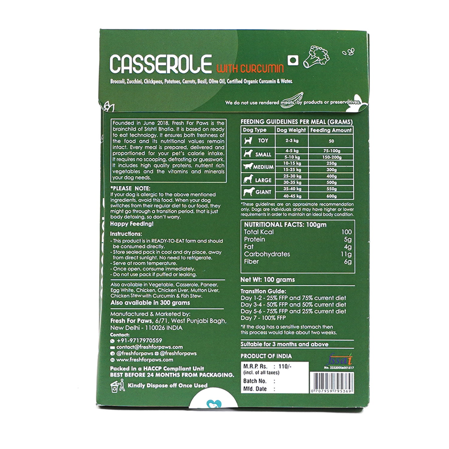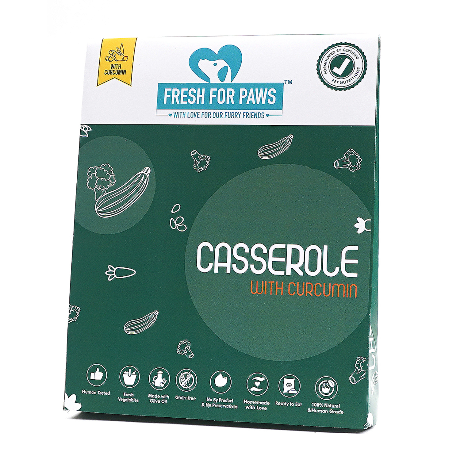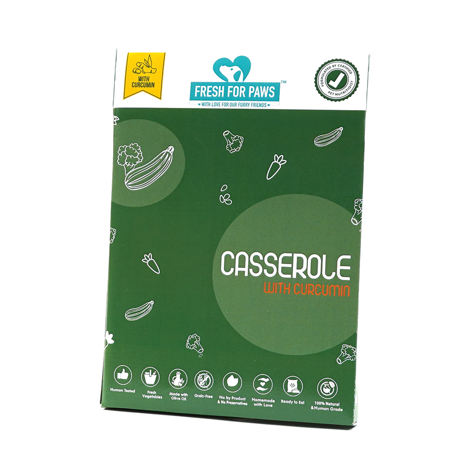 Delicious casserole curcumin stew and the goodness of veggies; Fresh for Paws packs a complete balanced diet for all your furry babies needs. Delicious home cooked meals made with the same ingredients you cook with. Wet food is better appreciated by dogs who do not drink water regularly. No preservatives or other toxic additives. Human grade food made by humans in a human food facility ensures that the treatment, to the pet and its food, is fair.
