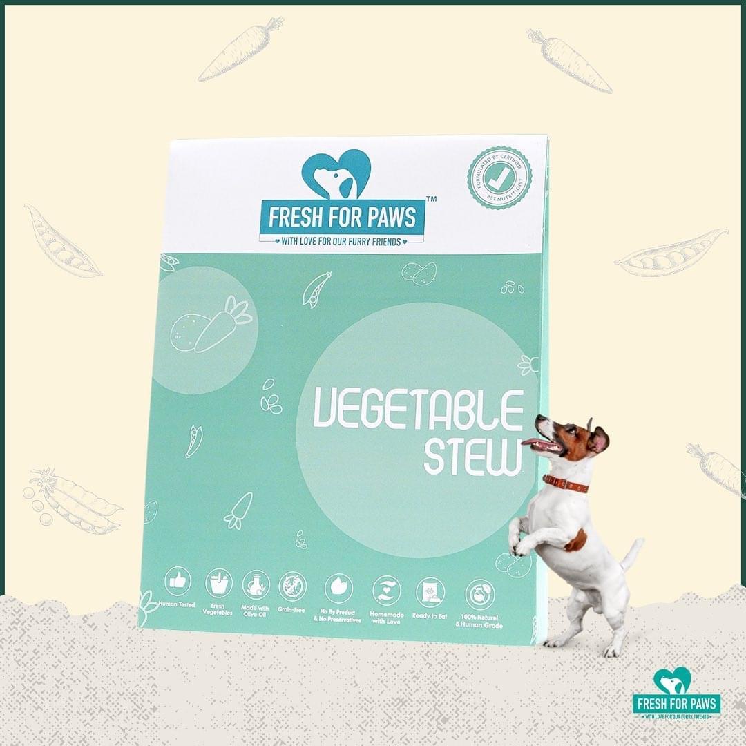 Delicious vegetable stew and the goodness of veggies; Fresh for Paws packs a complete balanced diet for all your furry babies needs. Delicious home cooked meals made with the same ingredients you cook with. Wet food is better appreciated by dogs who do not drink water regularly. No preservatives or other toxic additives. Human grade food made by humans in a human food facility ensures that the treatment, to the pet and it’s food, is fair.