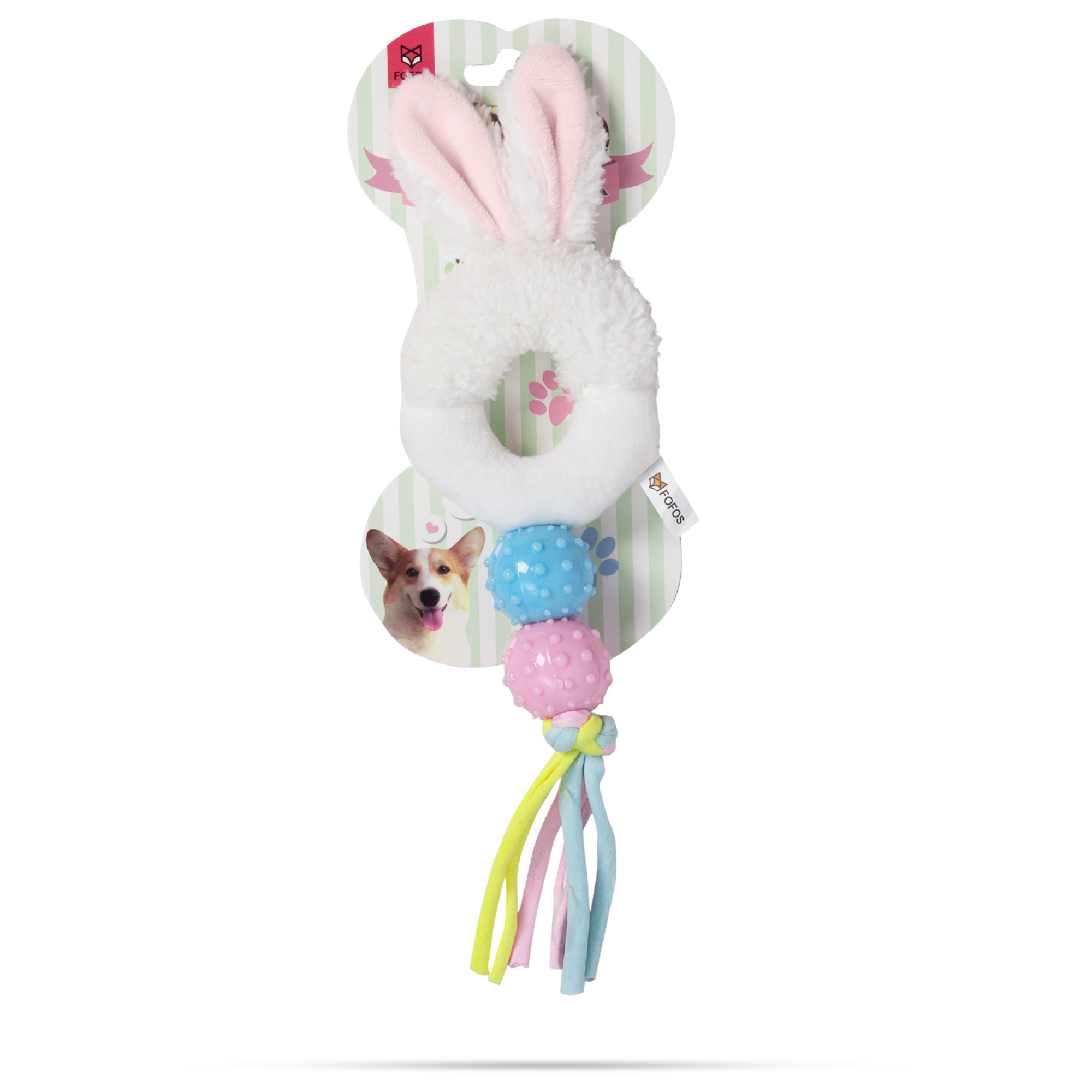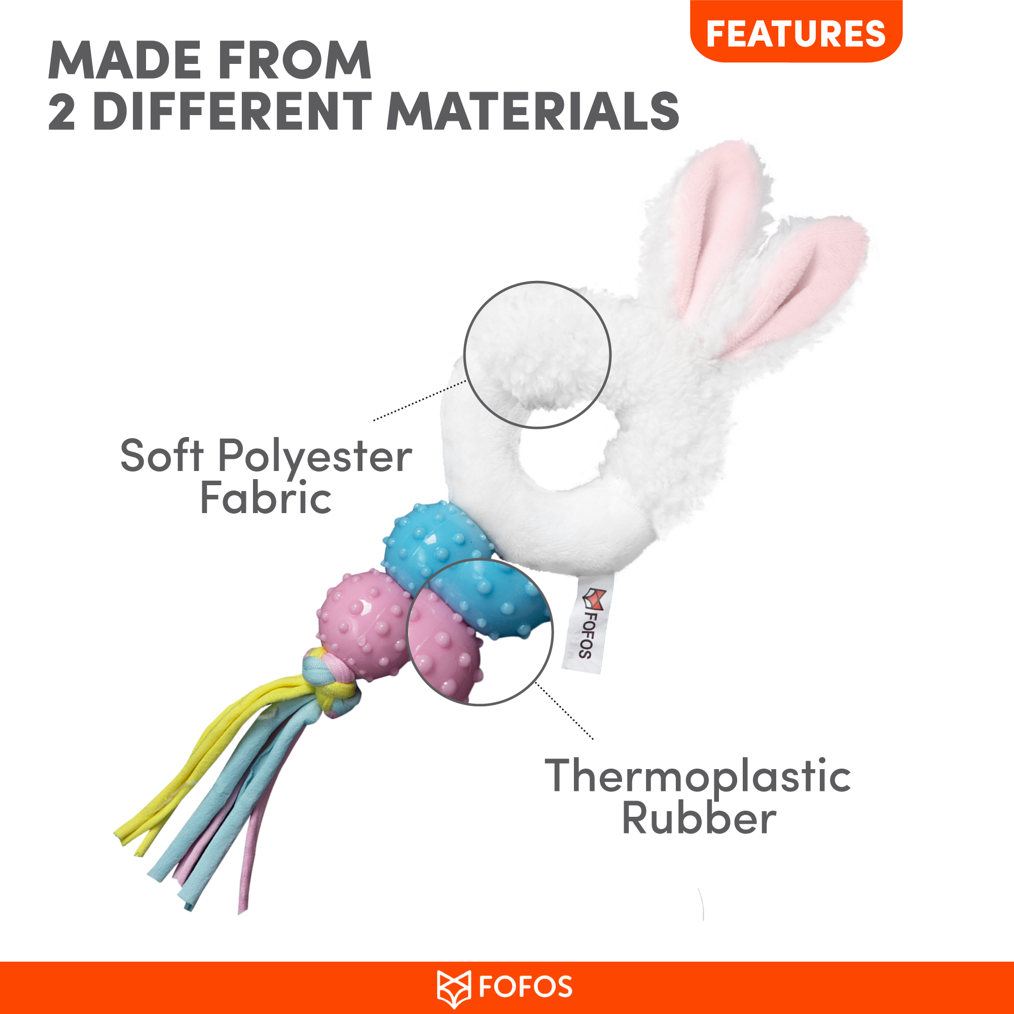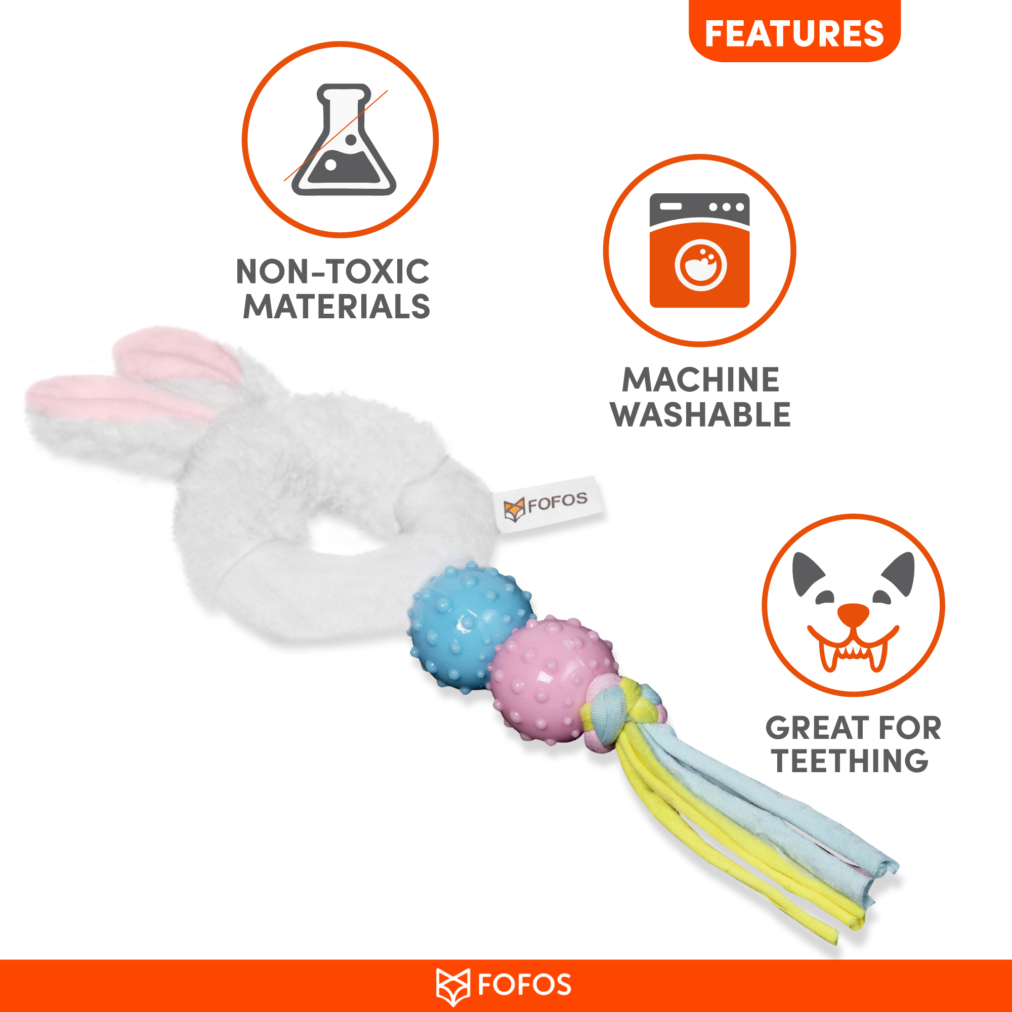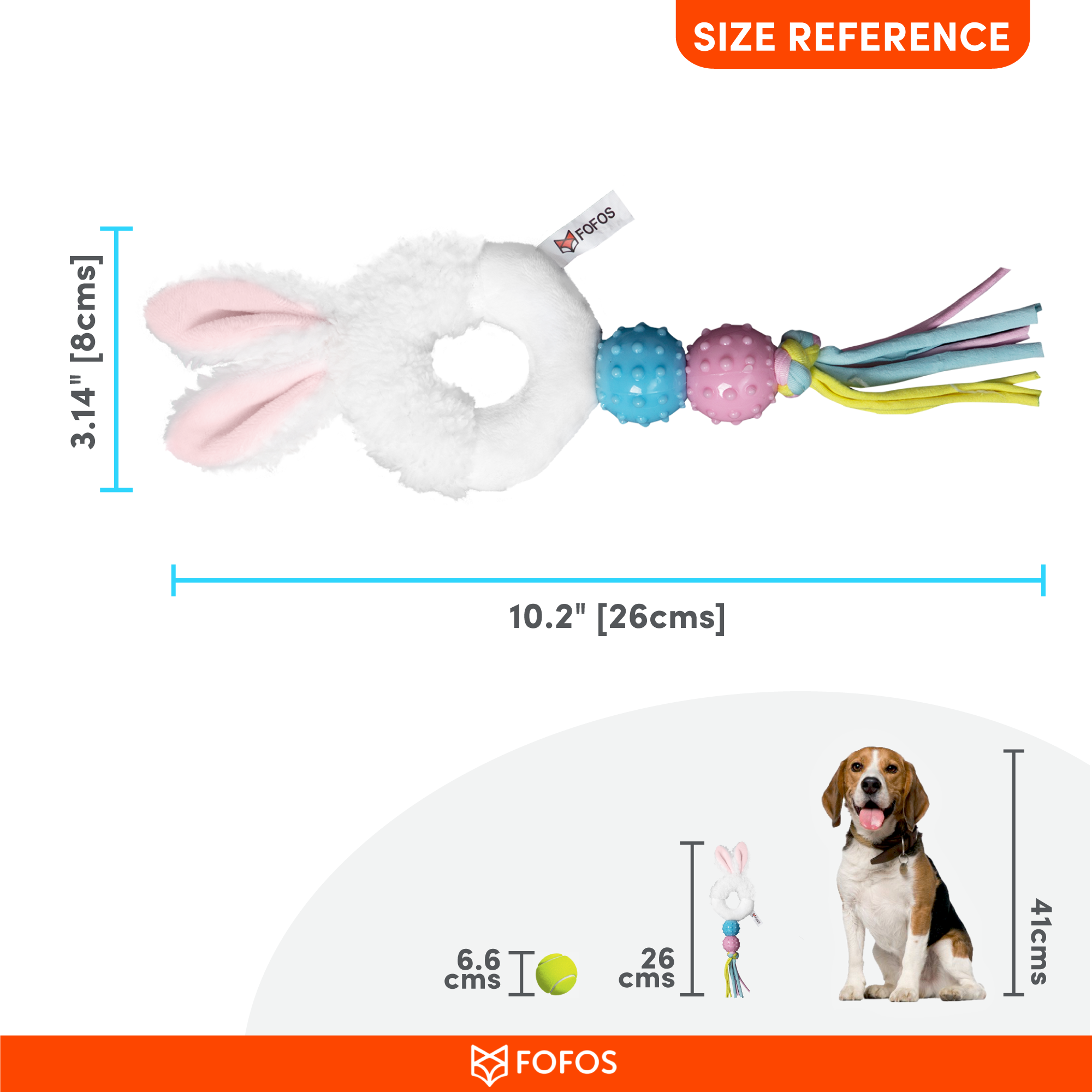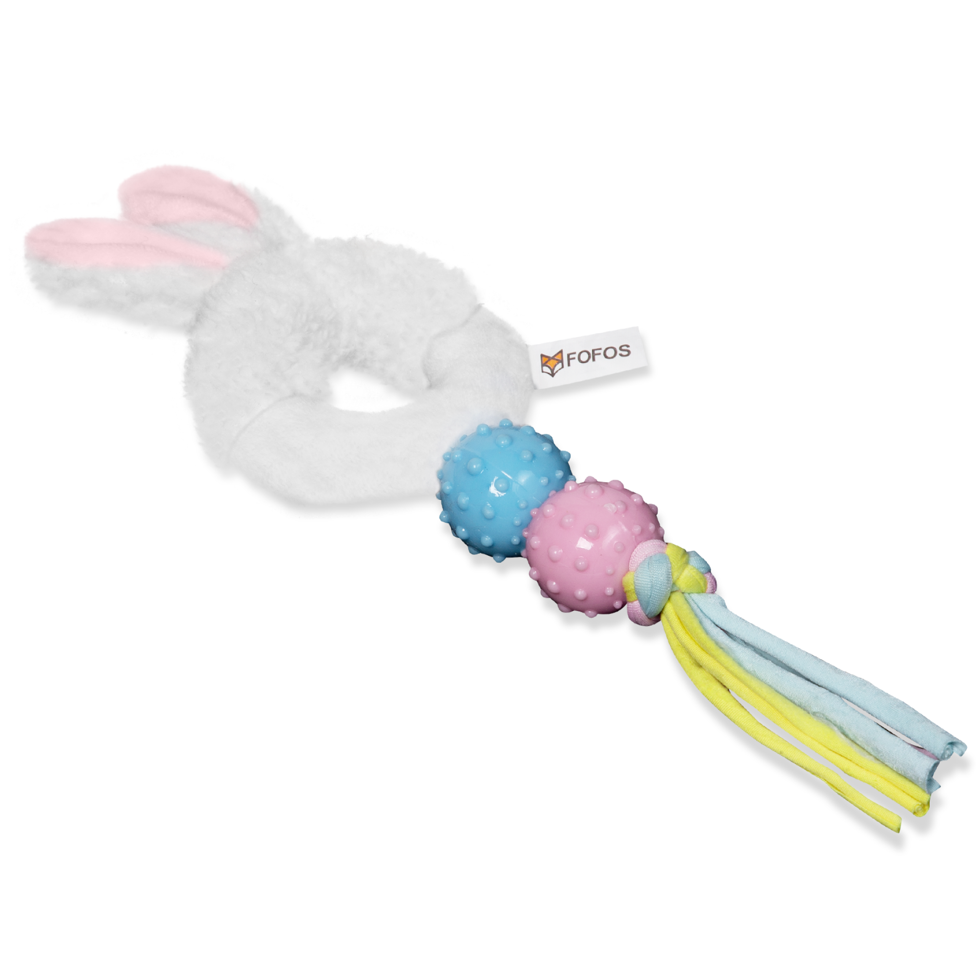 Fofos Babypet rabbit is a dog toy that helps soothe teething pain in puppies while being gentle on the gums.This toy comes with minimal stuffing and is made from a combination of 3 different materials to make playtime interactive for your dog. It is a perfect playmate for chewers who enjoy a fun game of tug. This chew toy is made from soft polyester fabric + TPR. and is machine washable. Engaging dog toys such as this allow your dog to chew, fetch, tug and bite on them while getting the right amount of exercise. This toy is ideal for x-small-small puppies (0-10kg) of various breeds such as dachshund, pom, spitz, Shih Tzu, pug, beagle, labrador, etc. Teething toys are soft and designed specifically to help soothe teething pain in puppies’ gums. It is a set of strong but not indestructible toys and is best suited for pet dogs that are teething, and have a chew, tugging, indoor fetch and cuddle playing style. Not recommended for dogs with adult teeth or aggressive chewers.
