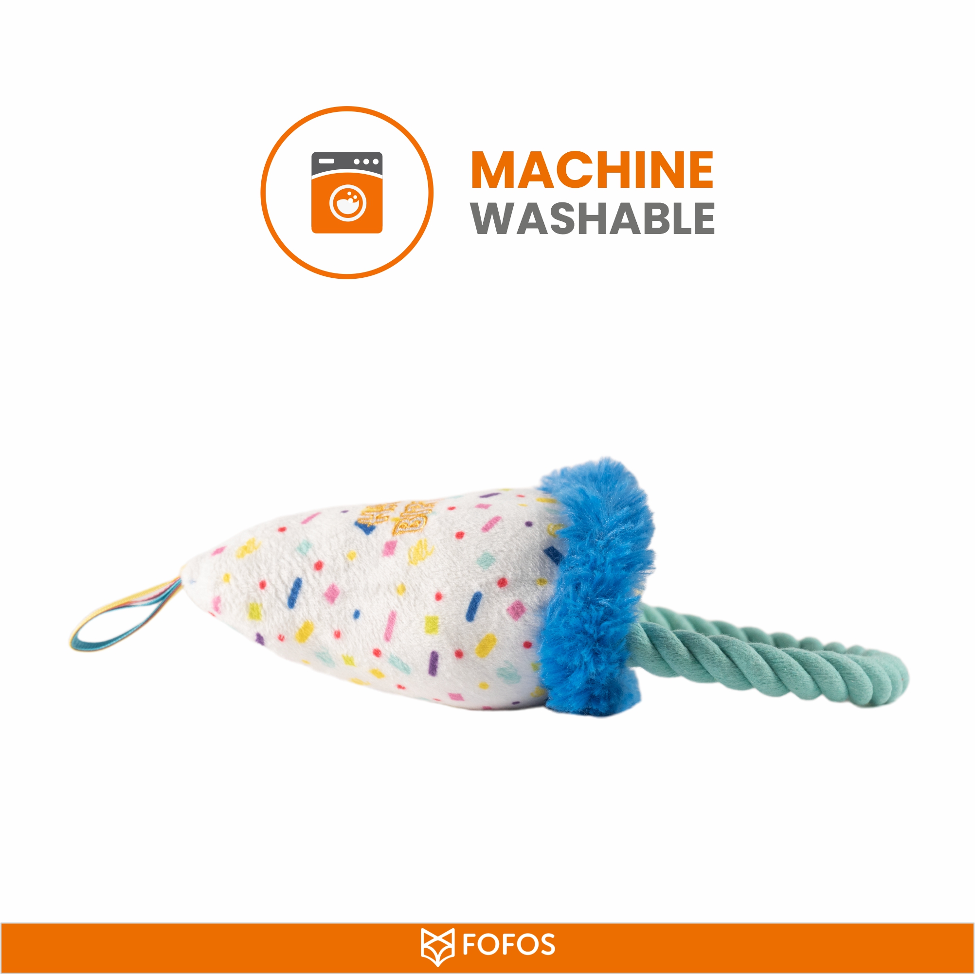Welcome to the world of BarkButler x FOFOS, where we design top-notch toys for your beloved furry friends. Introducing the BarkButler x FOFOS Birthday Hat Dog Toy, a unique blend of rope and plush toys that ensures fun and excitement for your pet. The squeaker inside keeps your dog engaged and entertained for longer durations. This dog toy is machine washable and made from soft fabrics, making it a great cuddle buddy for your pet. Additionally, this soft toy for dogs doubles as a chew toy, cleaning your pet’s teeth while they play, thus promoting dental health.