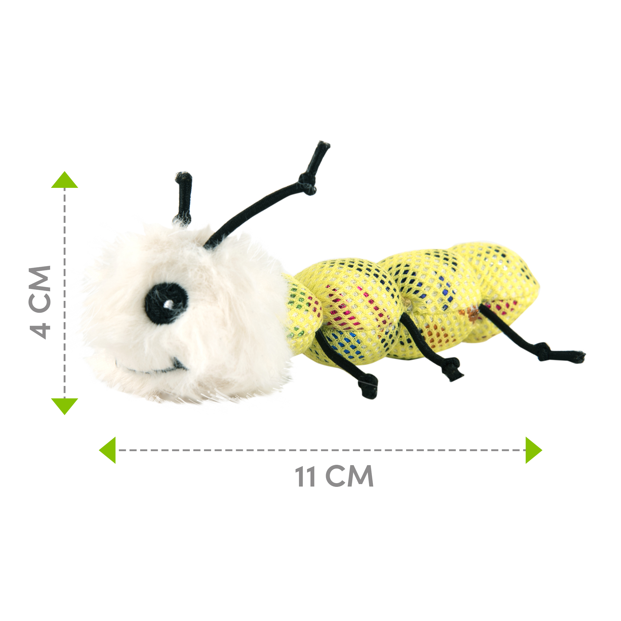 Catnip is a plant related to mint and contains an essential oil called nepetalactone that is known to cause euphoric, calming, and relaxing effects on cats. Catnip in small doses is completely safe, non-addictive for your kitten as the effects last about 10 mins for most cats. Fofos blocky Meow Worm is a cute cat playing toy filled with imported US grade dried catnip leaves and grass powder. The fun stretchy legs, bead shaped body and fur of this interactive toy allows your cat to chew, swat, nip, play, and even promotes harmless biting and scratching and soothes the gums for teething kittens. Fun engaging cat toys give your cat a mouse chase-like feeling ensuring good physical stimulation while the catnips give them a calm and relaxing experience. Ideal for small pet kittens as well as for older cats of Persian and other breeds as well. How to use: For maximum utility allow playtime for 30mins a day, then take away and repeat the following day.