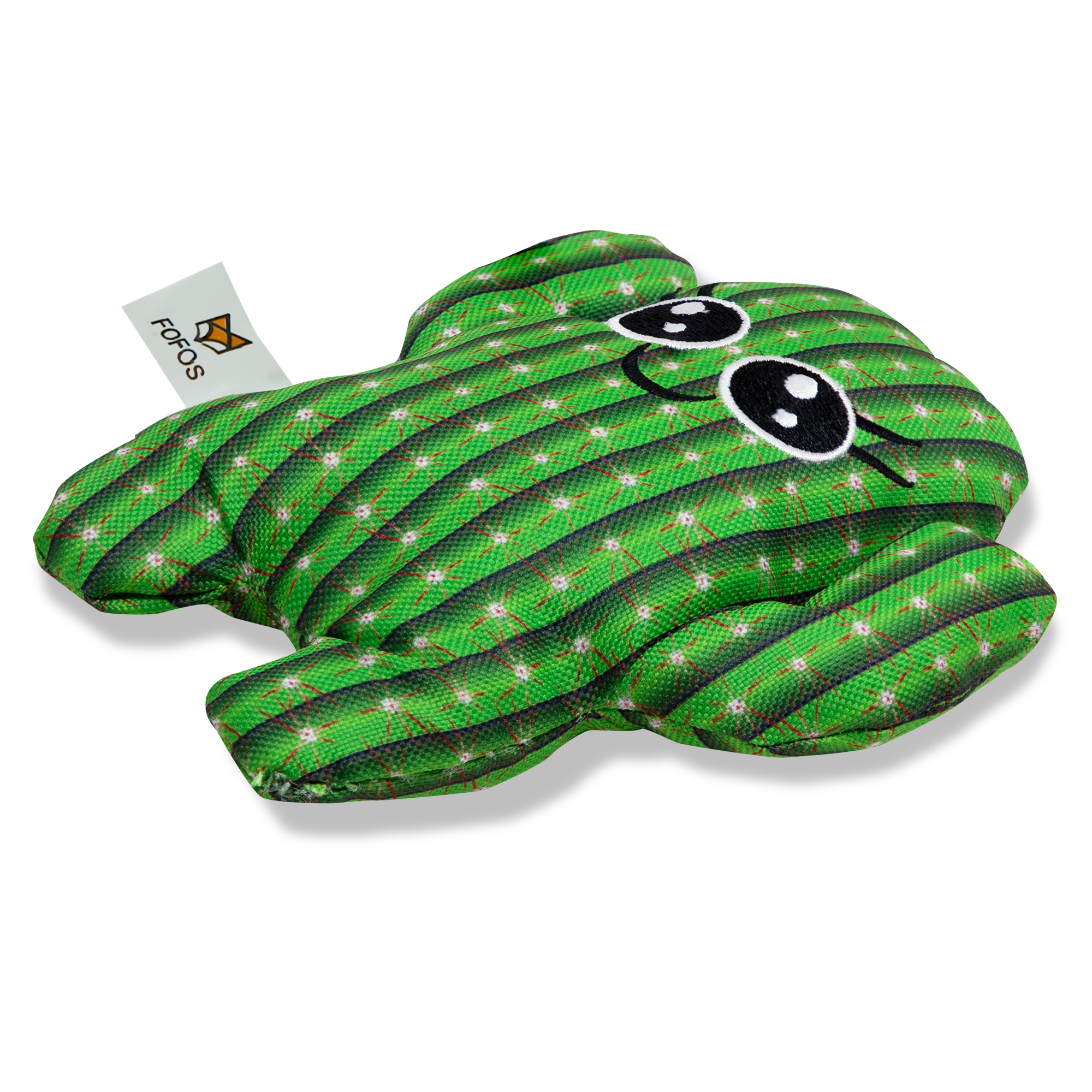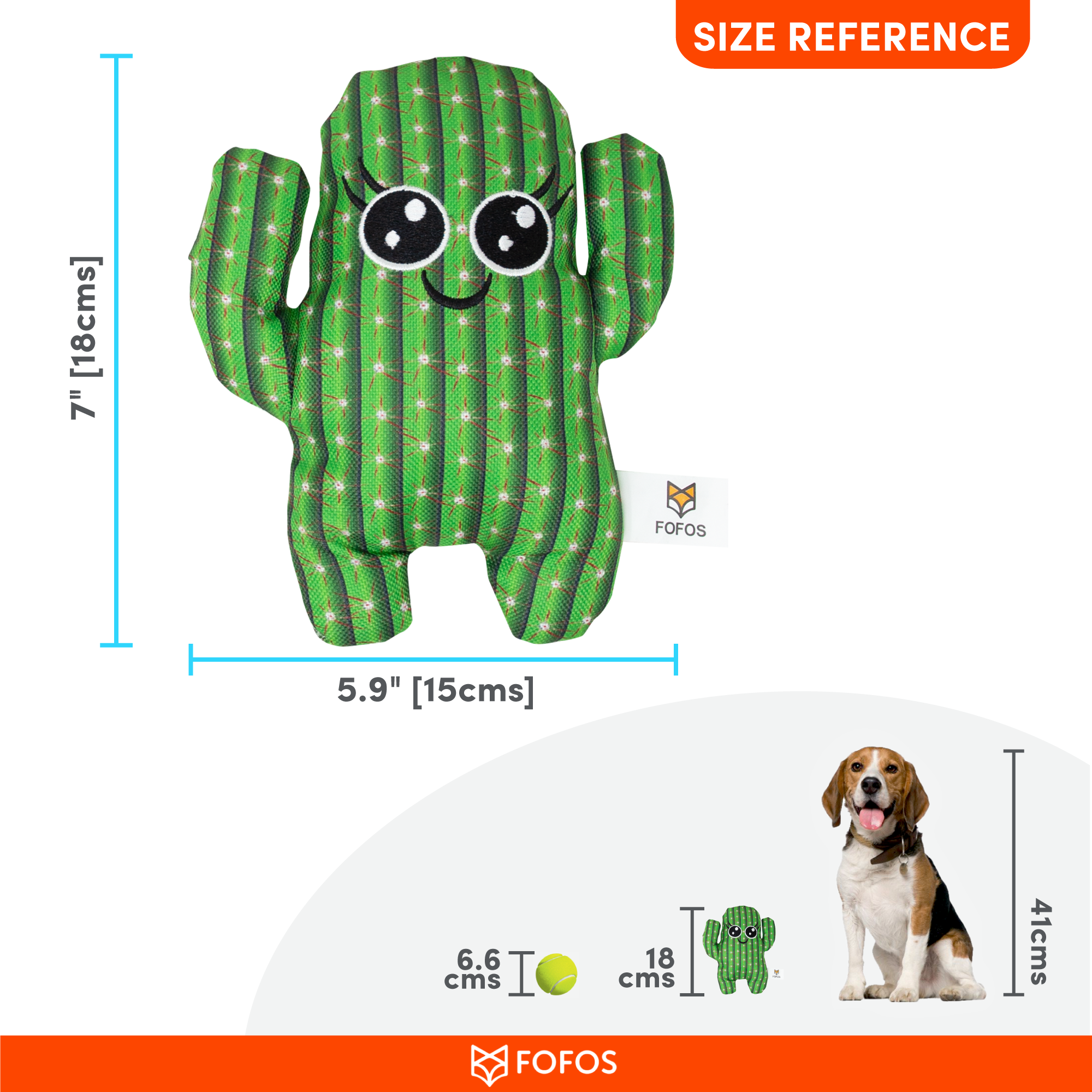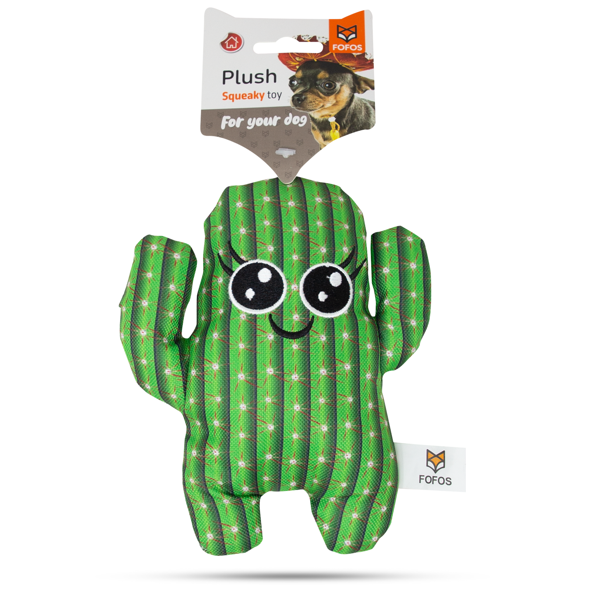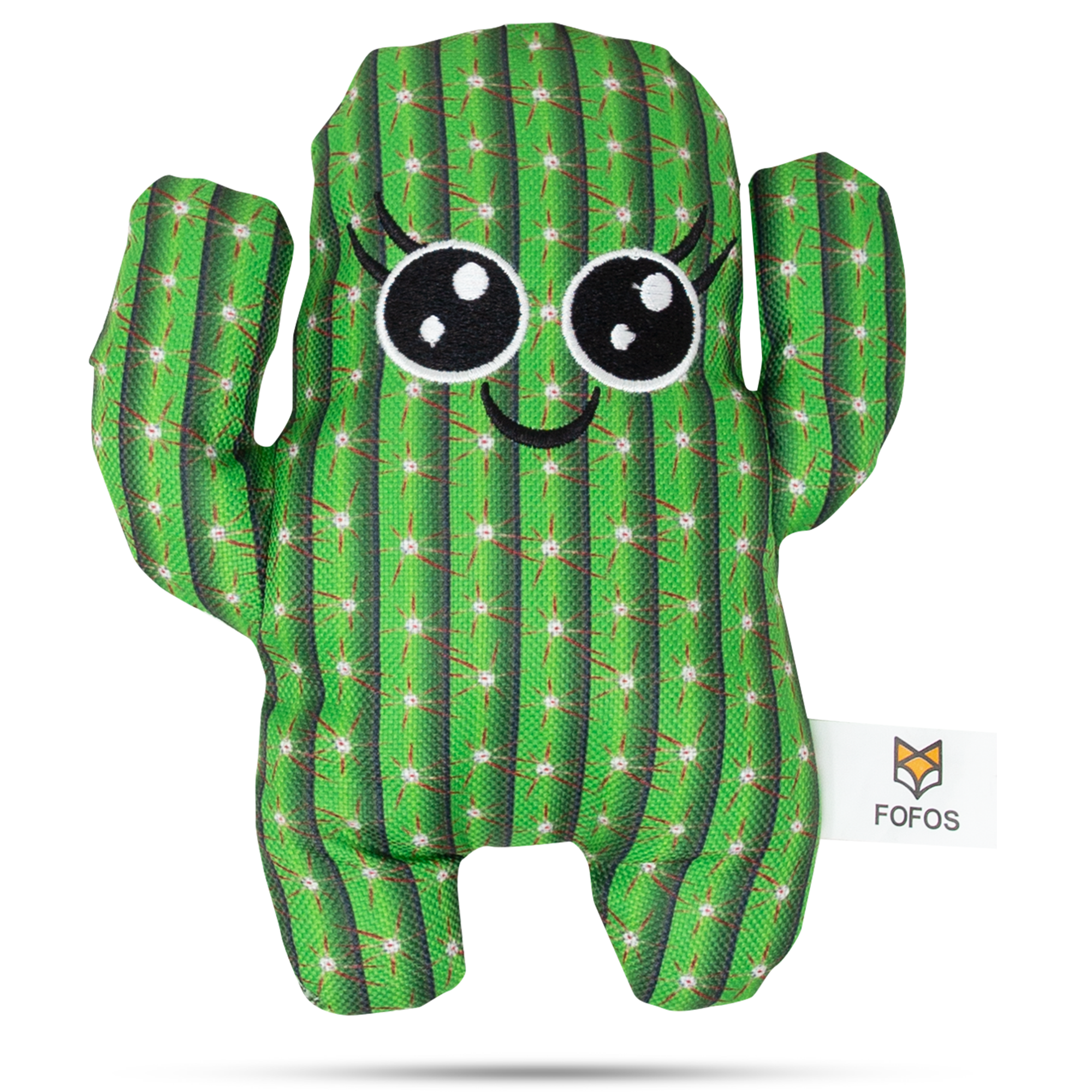 Fofos cactus boy is a durable stuffed plush toy for dogs with This tug toy has a squeaker inside that generates a squeaky noise to make playtime engaging. It is perfect for games like tug of war. This dog toy is made from soft polyester fabric and is machine washable. Interactive dog toys such as this allow your dog to chew, tug, and bite on it while getting the right amount of exercise. This soft toy is ideal for x-small-medium dogs (0-20kg) of various breeds such as dachshund, pom, labrador, etc. This toy is strong but not indestructible and is best suited for pet dogs that have light chewing, fetch, cuddle and indoor playing styles. Not recommended for aggressive chewers.