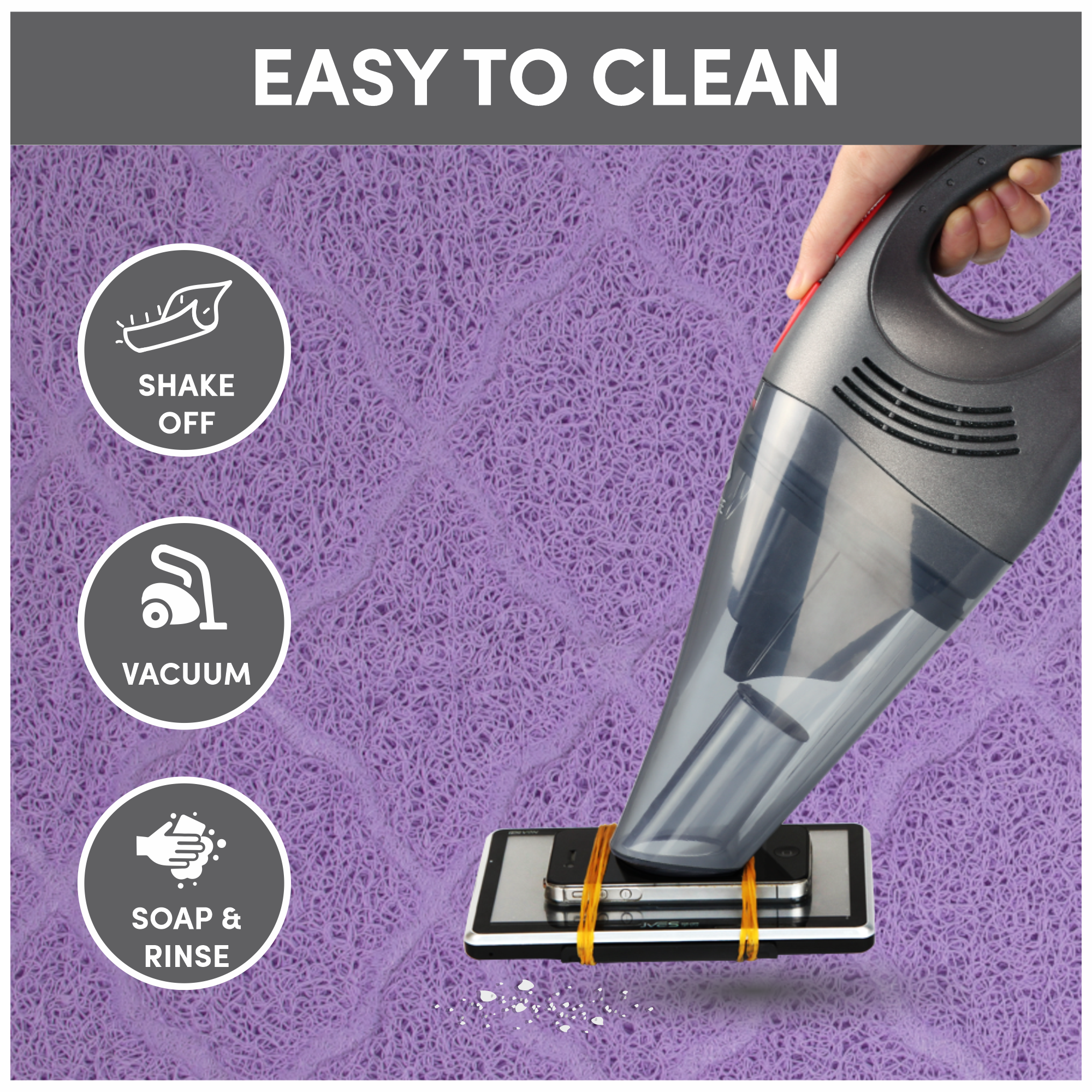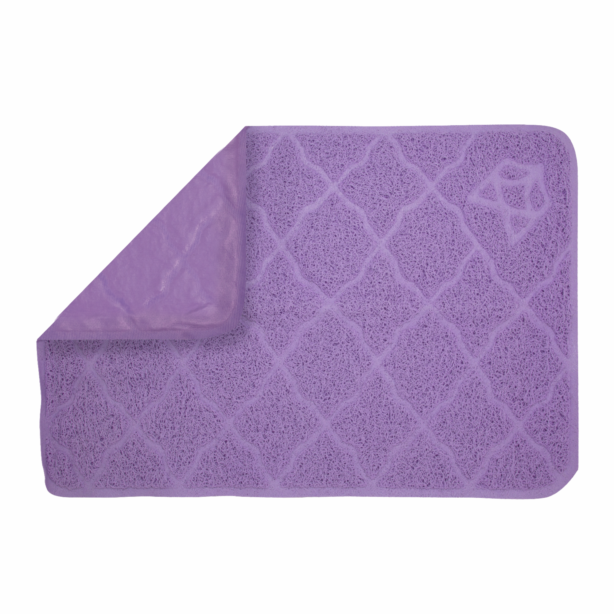 BarkButler x Fofos Cat Non-Slip Mat-Violet is a cat litter mat with powerful litter lock mesh technology that ensures the cat litter does not get dragged around the house. The innovative design helps trap litter, effectively reducing the amount scattered on the floor and tracked throughout the home. It is made from high-quality PVC, that is non-toxic, soft and durable, and is fully safe and comfortable for your kitten. This mat is super easy to clean with a vacuum, wiping the litter out or simply shaking it off and giving it a quick rinse under tap water to clean it. This product provides a soft step-able surface and has a sleek design to it. This mat is ideal for kittens as well as older cats. The size of this mat is 60cm x 40cm x 0cm (L*B*H)