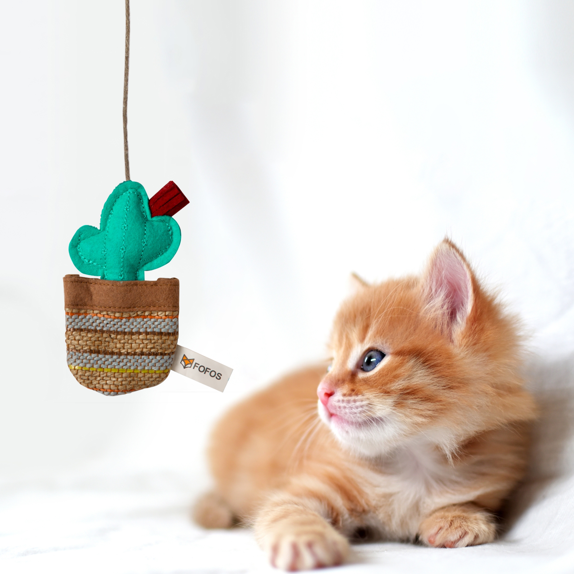 Fofos Cactus Wand Phoenix is a fun plush cat teaser toy with imported US grade dried catnip leaves and grass powder inside. A durable wooden stick and robust rope is attached to it. This catnip toy is a combination of durable wood and soft fabrics. Interactive toys are known to unleash a kitten’s natural desire to hunt, chase, play, chew, swat and even promote harmless biting and scratching. This cat toy helps your cat pursue its true instinctive behaviour and is a great confidence builder especially for cats with anxiety. Kitten teaser toys are the best way to exercise your cat and keep them alert. Fun engaging cat toys give your cat a mouse or a ball chase-like feeling ensuring good physical stimulation while the catnips give them a calm and relaxing experience. Ideal for small pet kittens as well as for older cats of Persian and other breeds as well. How to use: We recommend consistent and scheduled playtime. Start with five-minute a day sessions. Just like a dog needs a walk, a cat needs playtime! What is Catnip: Catnip is a plant related to mint and contains an essential oil called nepetalactone that is known to cause euphoric, calming, and relaxing effects on cats. Catnip in small doses is completely safe, non-addictive for your kitten as the effects last about 10 mins for most cats.