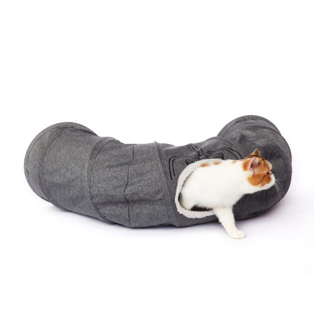 Fofos catboy tunnel half donut grey is an interactive cat tunnel with a sturdy steel frame and protective ends to ensure your cat’s safety. It has a collapsible structure that allows rolling and folding it into your car or suitcase making it convenient to travel with. 3 points of entry and exits are provided to allow your cat to come and go in different places freely in the tunnel. It can be placed indoors and provides an enclosure like a house for your cat to have lots of interactive fun while getting the right amount of exercise. This cat tunnel also includes two plush toys with US grade catnip powder inside to keep your cat engaged and active. This cat tunnel is recommended for cats of Persian and other breeds of all sizes. What is Catnip: Catnip is a plant related to mint and contains an essential oil called nepetalactone that is known to cause euphoric, calming and relaxing effects on cats. Catnip in small doses is completely safe, non-addictive for your kitten as the effects last about 10 mins for most cats.