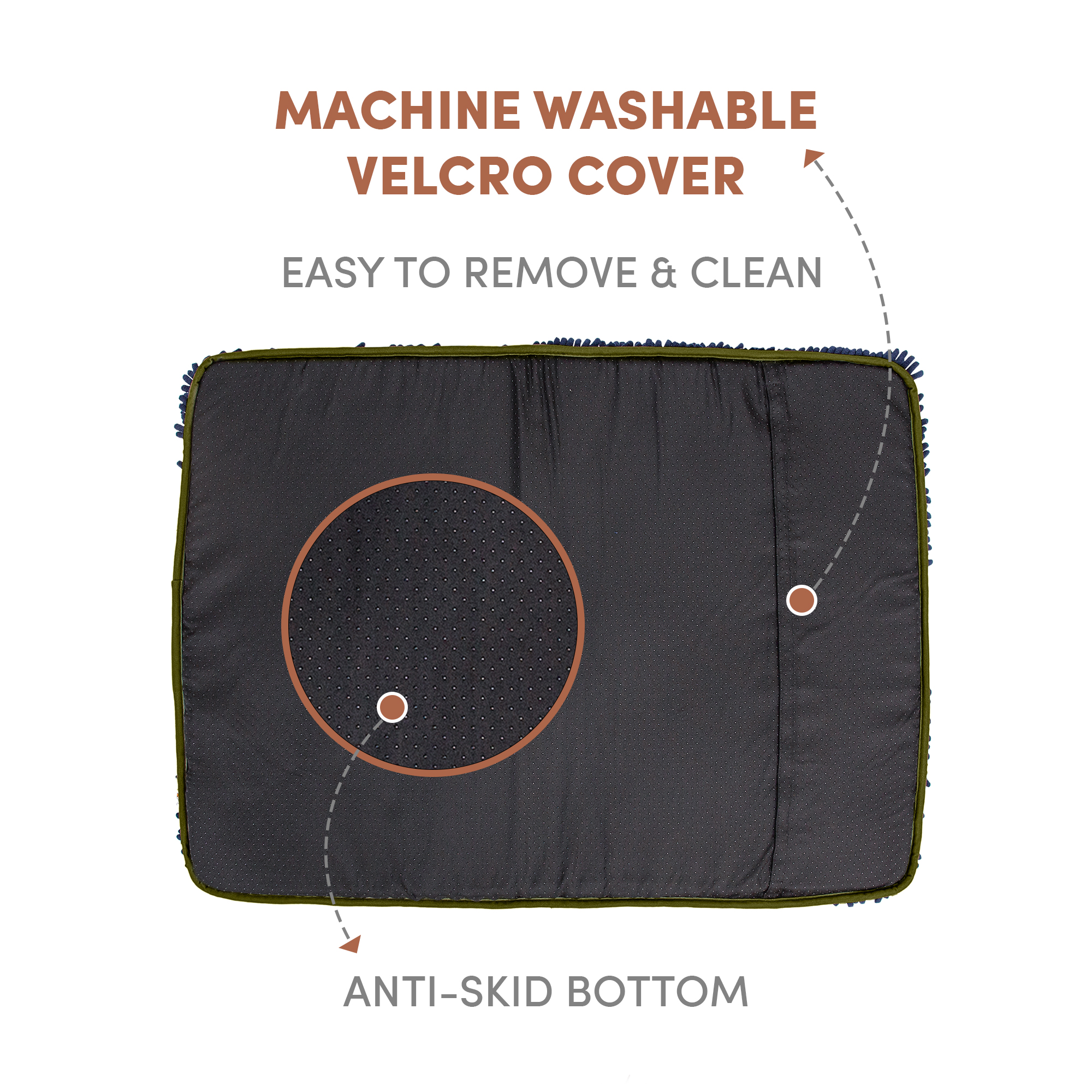 Luxury soft bed made from ultra-soft chenille & super-absorbent fabrics with a cover designed for your pet’s comfort & your convenience. The strap makes it easy to remove or put on the cover which can be tossed in the washing machine or washed by hand. The anti-skid bottom ensures the bed does not slip when placed indoors and outdoors when your pet engages in play or is simply sitting, sleeping on the mat. This lightweight foam bed can be rolled or folded to fit in your car or suitcase making it convenient to travel with. It helps ease anxiety and making every trip calm and stress-free for your pet. To choose the right bed for your pet we recommend that you measure their length. Measure your pet from the tip of its nose to the base of the tail and add 6”- 8” for extra space. This will ensure enough support and room for your pet to stretch and get comfortable. The dimensions of this bed are L = 79 x B = 57 x H = 3 cm/L = 31.1 x B = 22.5 x H = 1.2 in Recommended for medium-sized dog breeds.