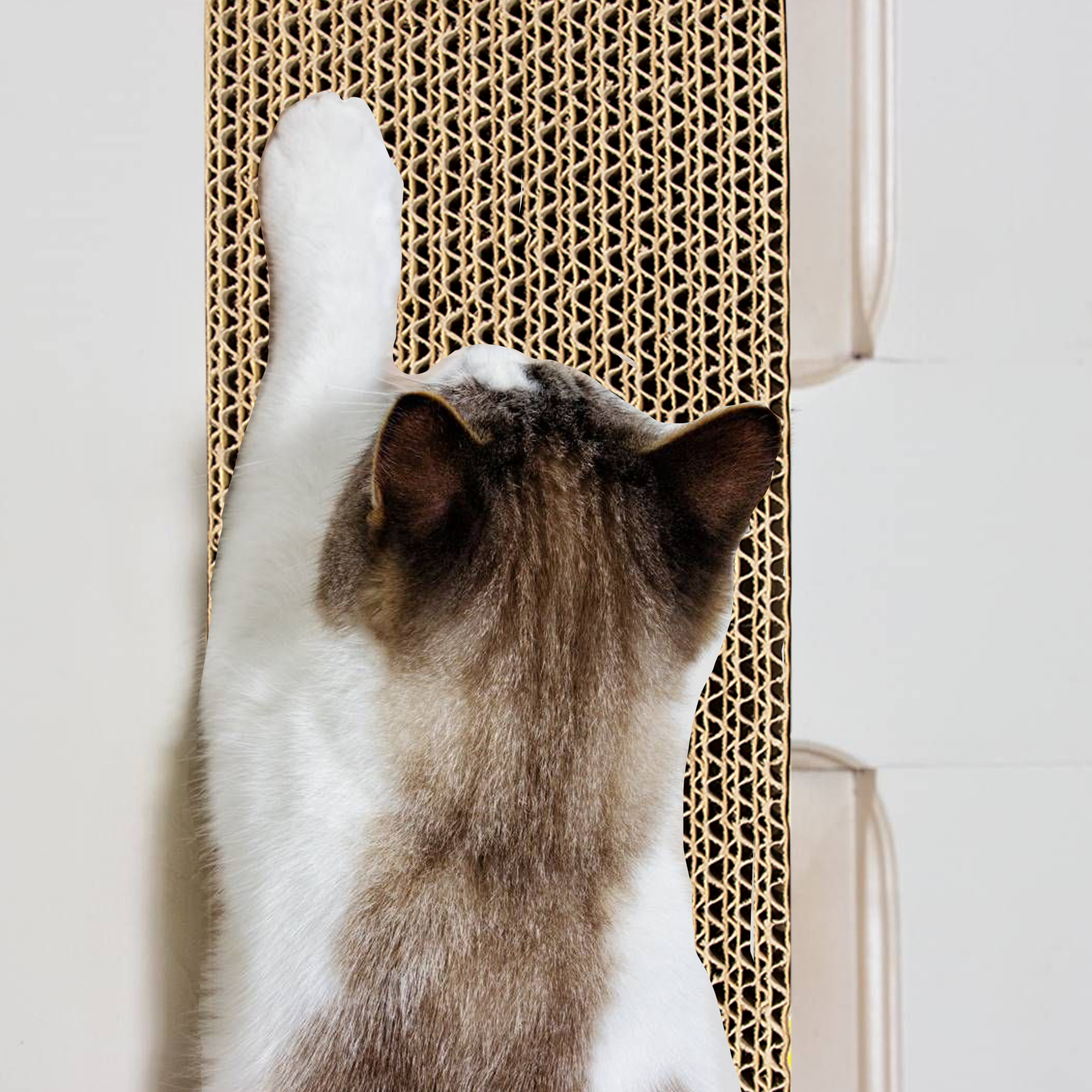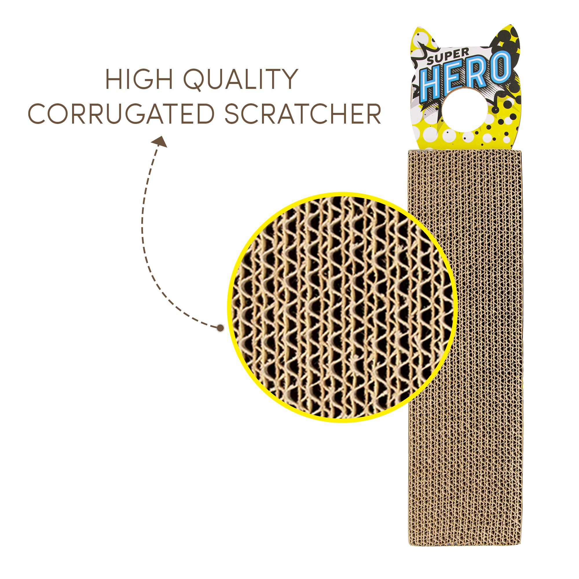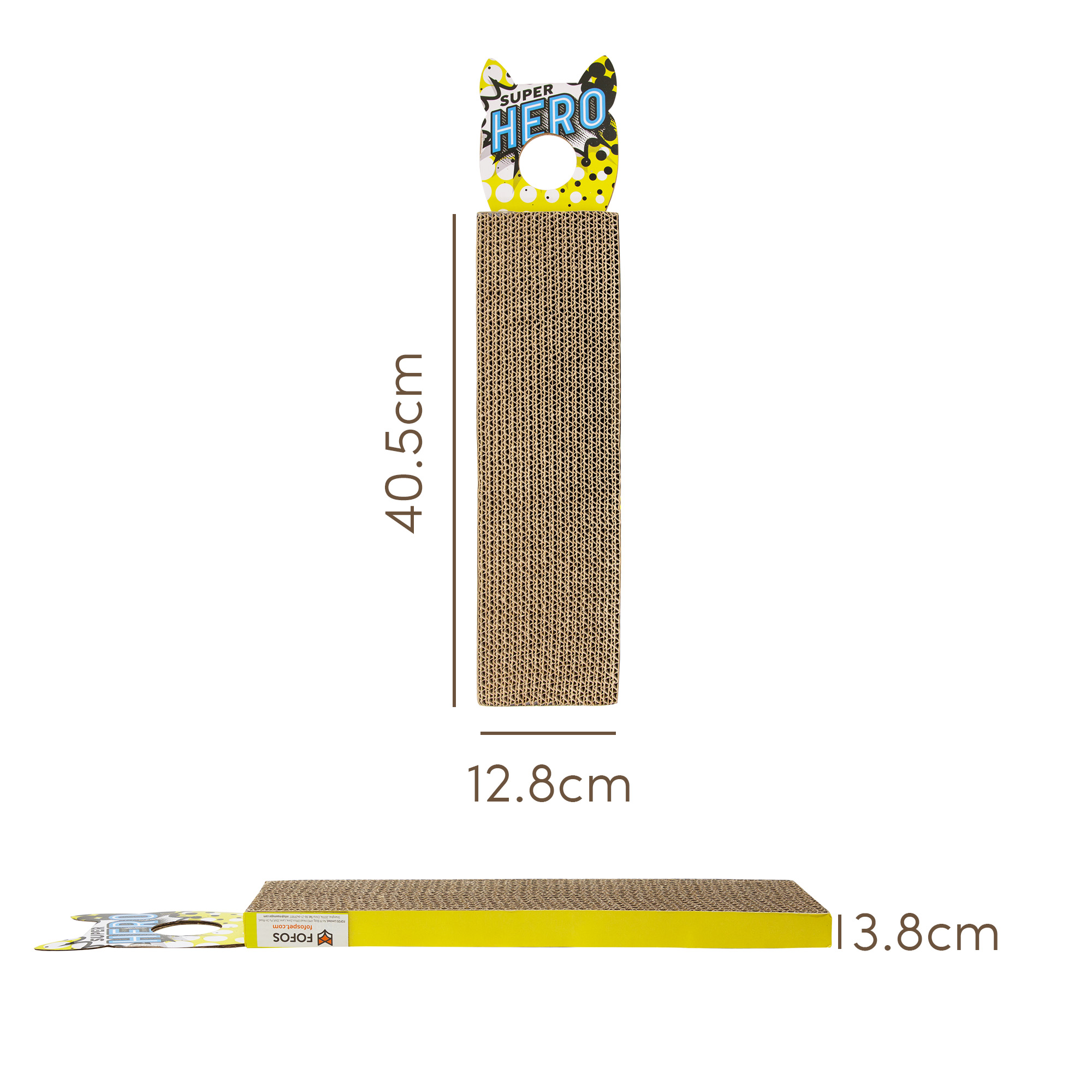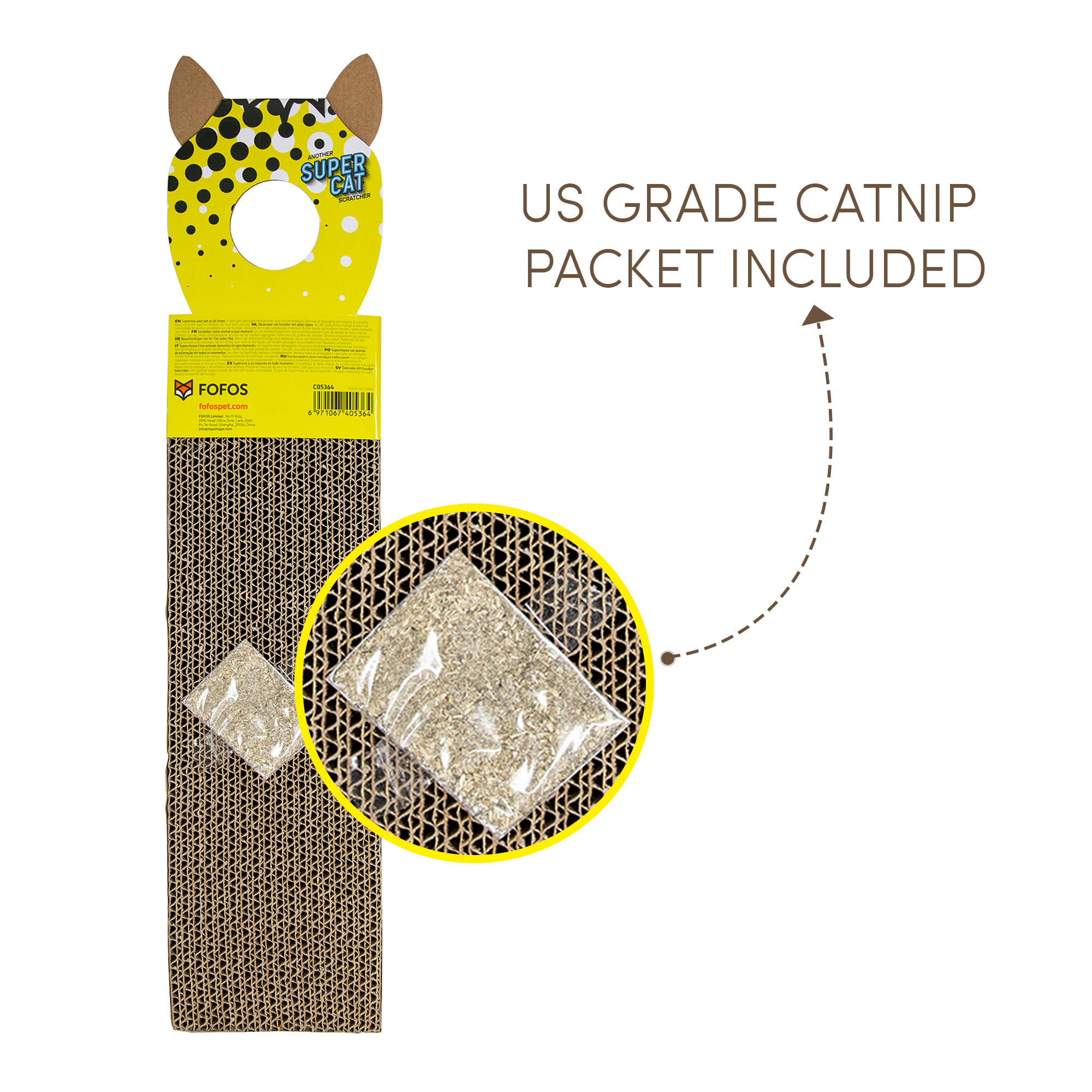 Fofos comic door hanger is an interactive double-sided cat hanger toy that can hang on door handles, hooks etc and allows your cat to play by themselves. This cat toy is inclusive of knobs and an imported US grade catnip powder packet. This cute toy has a unique design that helps your cat satisfy its scratching instinct, release pent up stress and acts as the perfect furniture substitute and also keeps your cat away from scratching the carpet and mat in the house. This cat hanger toy is made from durable, nontoxic cardboard that can withstand your cat’s sharp nails and claws and helps keep them healthy. This toy is recommended for small pet kittens as well as older cats of Persian and other breeds as well. Pro Tip: Sprinkle some catnip on the cardboard while introducing the pad to a cat to entice your cats to scratch What is Catnip: Catnip is a plant related to mint and contains an essential oil called nepetalactone that is known to cause euphoric, calming and relaxing effects on cats. Catnip in small doses is completely safe, non-addictive for your kitten as the effects last about 10 mins for most cats.