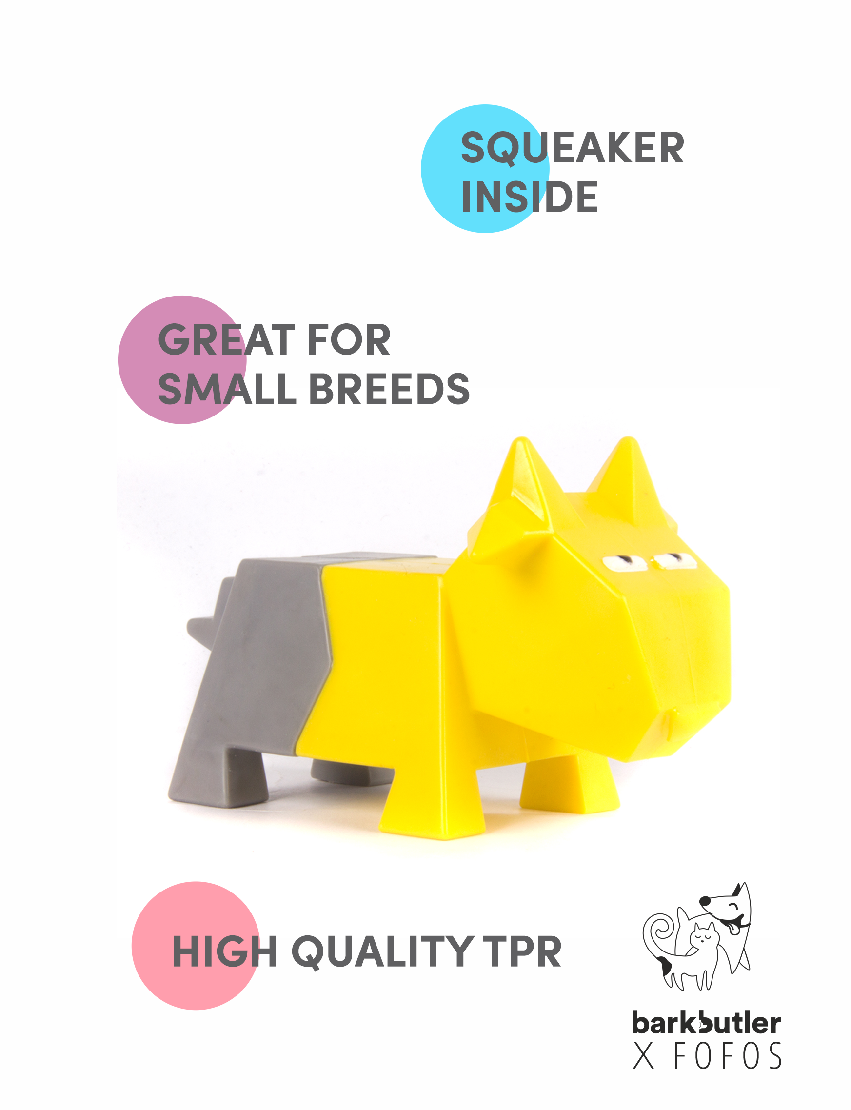 This toy keeps hyper-active dogs busy as its inviting texture gives them something to do- chew. This squeaky toy for dogs squeaks when thrown, bitten into or pounced upon. Made from non-toxic Thermoplastic Rubber.
