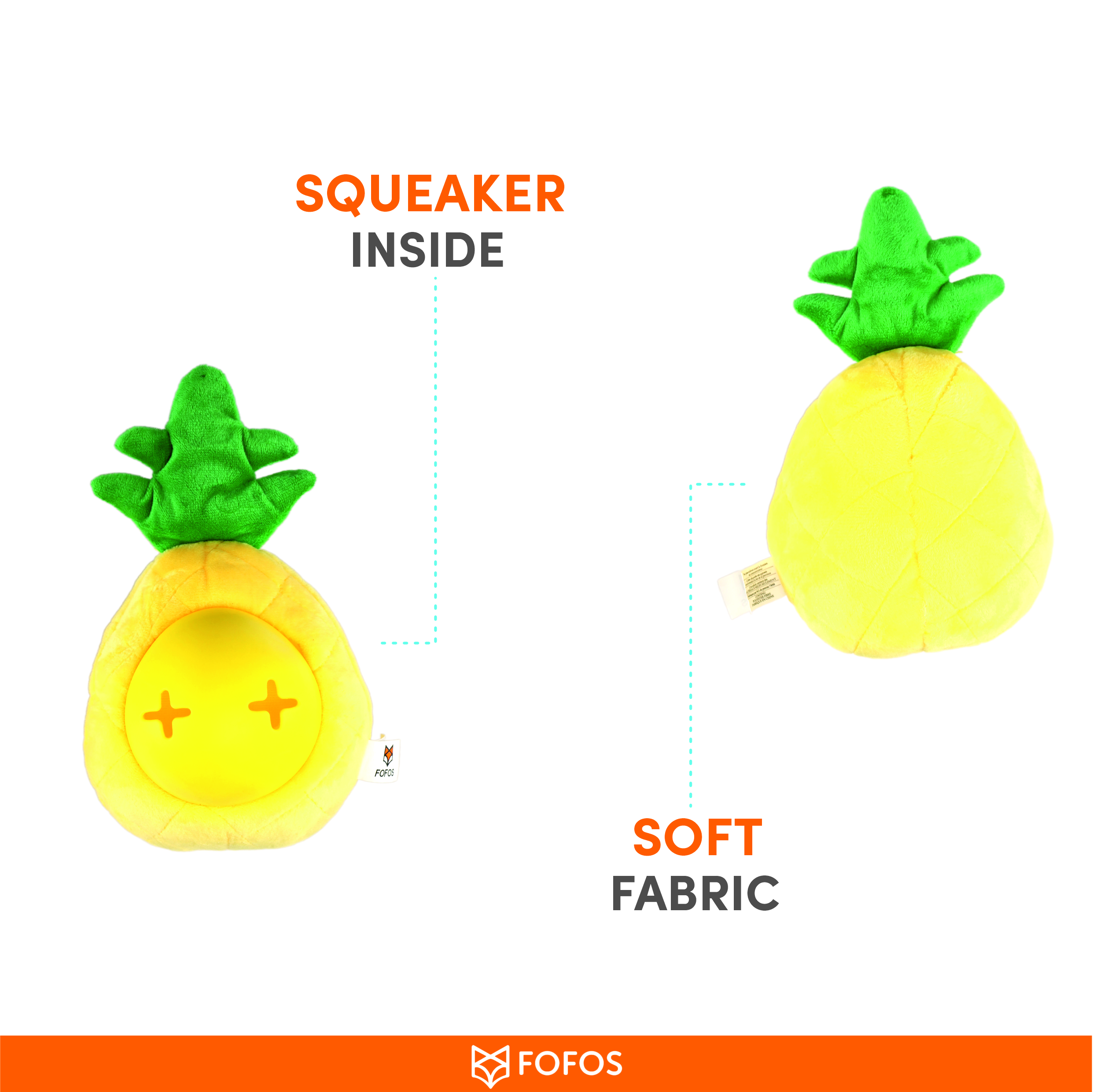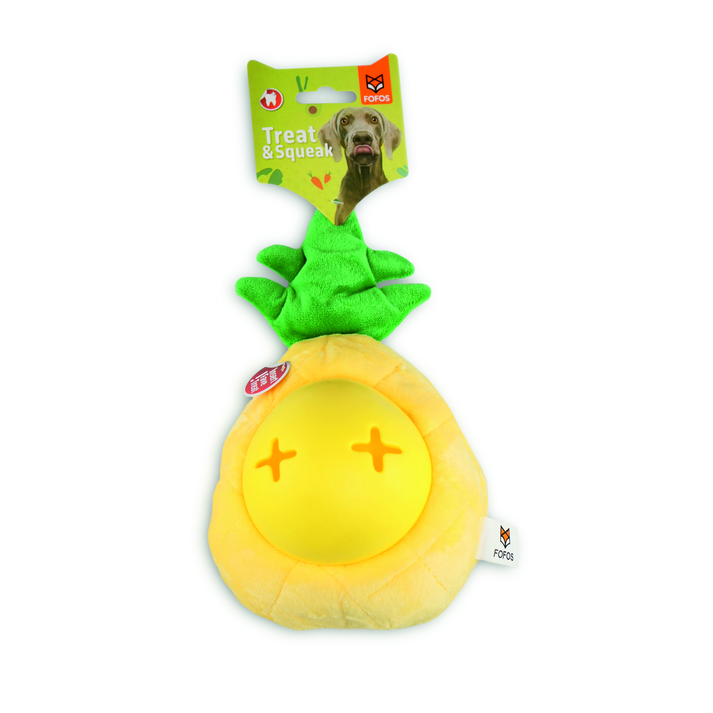 Introducing the Barkbutler x Fofos Pineapple Treat Toy, an adorable and stimulating interactive dog toy that combines plush fabric with soft, non-toxic TPR for a delightful play experience. Fill with treats like jerkies, sticks, or kibble to create an engaging puzzle that challenges your pet’s intelligence and alleviates boredom. The built-in squeaker adds a fun hide-and-seek element, while the reinforced fabric layer ensures durability. Perfect for moderately aggressive chewers or those who enjoy chewing, tugging, and fetching, this versatile toy promotes exercise & brain stimulation. Choose the Barkbutler x Fofos Pineapple Treat Toy for a safe, entertaining, and enriching playtime that your dog will love.