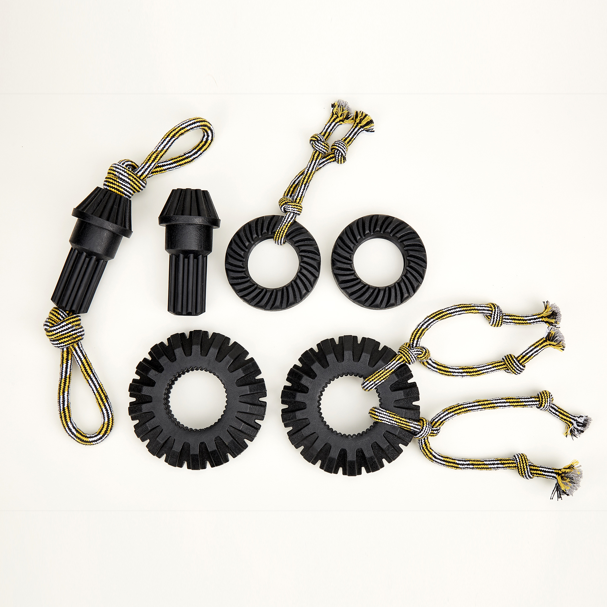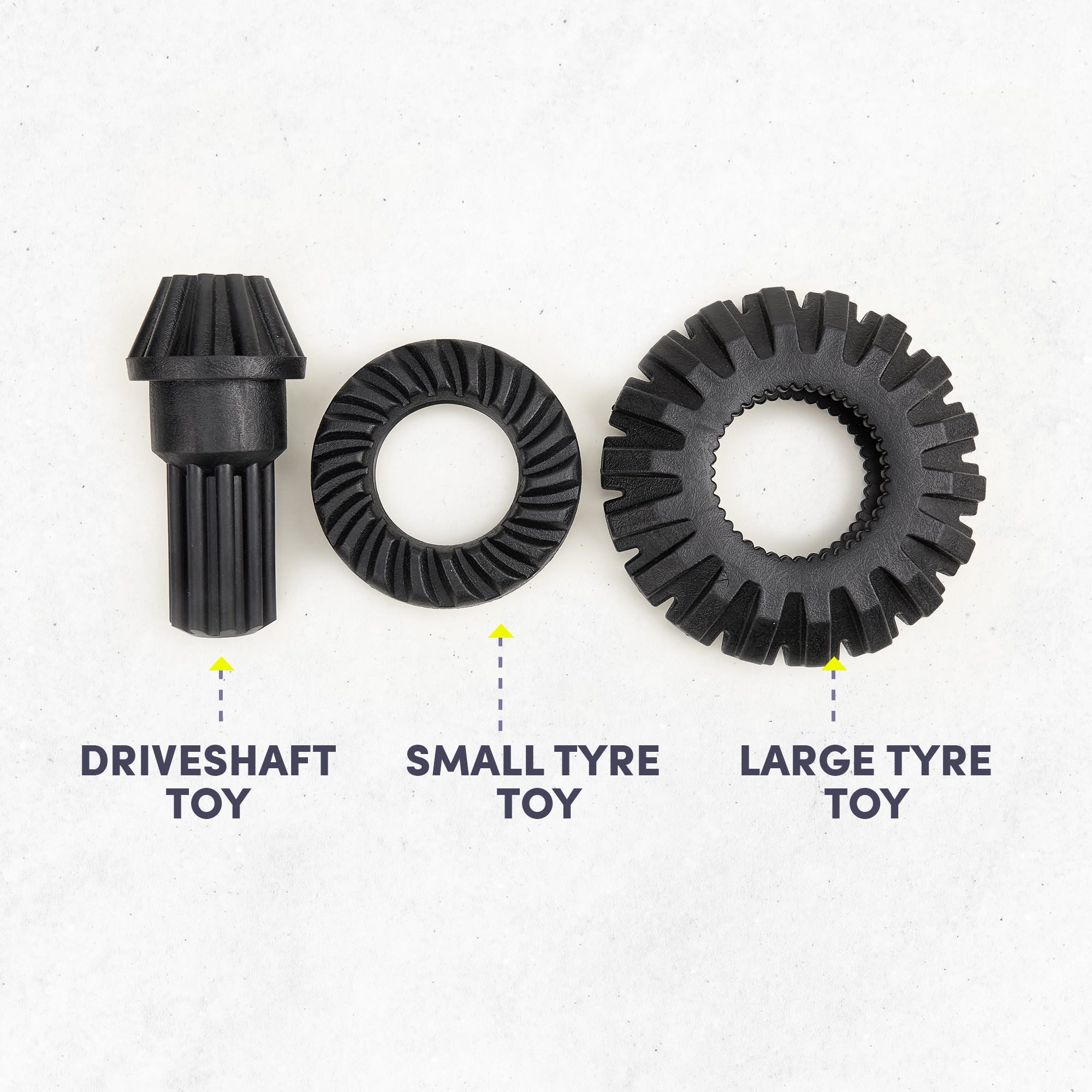 Fofos driveshaft toy is a durable super chewer dog toy that is long-lasting and is best suited for most aggressive chewers. The tough shape is strategically designed for fun games of fetch and tug and also promotes independent play in dogs. This chew toy is treat-dispensing and can hold treats, peanut butter, dahi etc and helps keep your dog engaged. It is made from high-density TPR material. Interactive dog toys such as this allow your puppy to chew, fetch tug, and bite on it while getting the right amount of exercise. This toy is ideal for medium-large dogs (10-30kg) of various breeds such as st bernards, labradors, beagle, etc. This super chew toy is strong and durable but not indestructible and is best suited for pet dogs that have aggressive chewing, fetching and tug playing styles. Recommended for most aggressive chewers.
