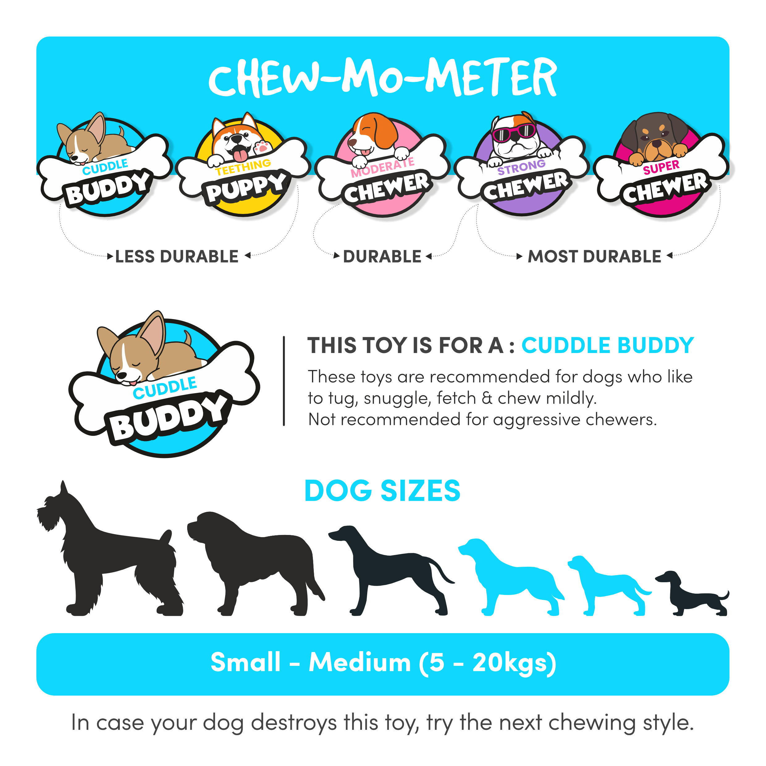Fofos latex bi toy ape is a dog toy with a squeaker inside that gives rise to a squeaky noise when it is head tilted. This toy is made from 100% natural latex rubber. It has a unique soft texture to it and is gentle on teeth and gums. The squeaker inside makes this toy engaging for your pet. Interactive dog toys such as this allow your dog to chew, fetch, and bite on it while getting the right amount of exercise. This squeaky toy is ideal for small-medium dogs (5-20kg) of various breeds such as dachshund, pom, spitz, etc. These toys are recommended for dogs who like to tug, snuggle, fetch and chew mildly. Not recommended for aggressive chewers.