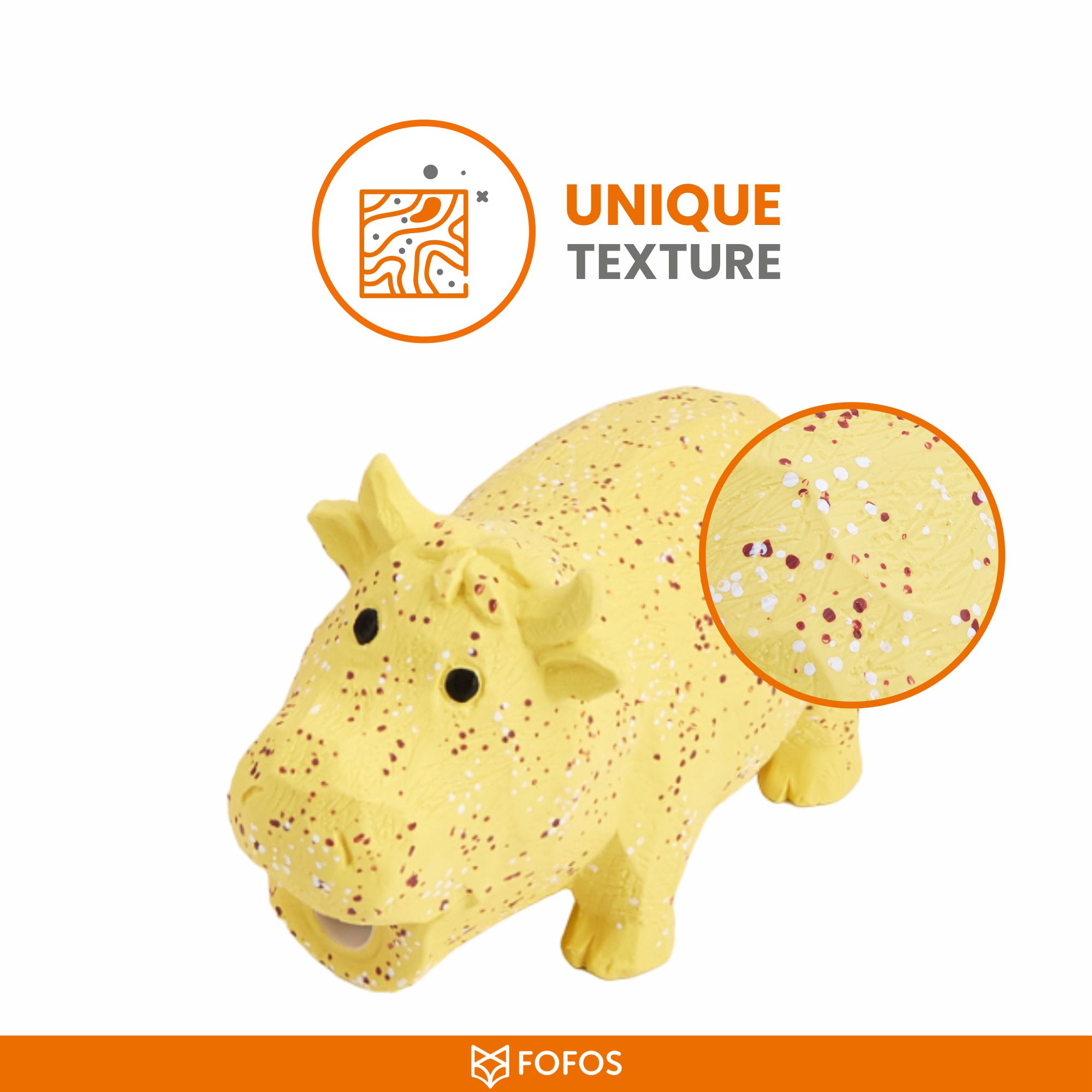 Introducing the BarkButler x FOFOS Yellow Ox Pet Toy – the perfect addition to your collection of high-quality toys for puppies and adult dogs alike. Crafted from 100% natural latex, this delightful ox-shaped toy promises durability and safety, making it an excellent choice for pet owners who prioritize their dog’s health and happiness. Our Yellow Ox Pet Toy features a unique texture that dogs find irresistible, providing them with hours of entertainment and engagement.