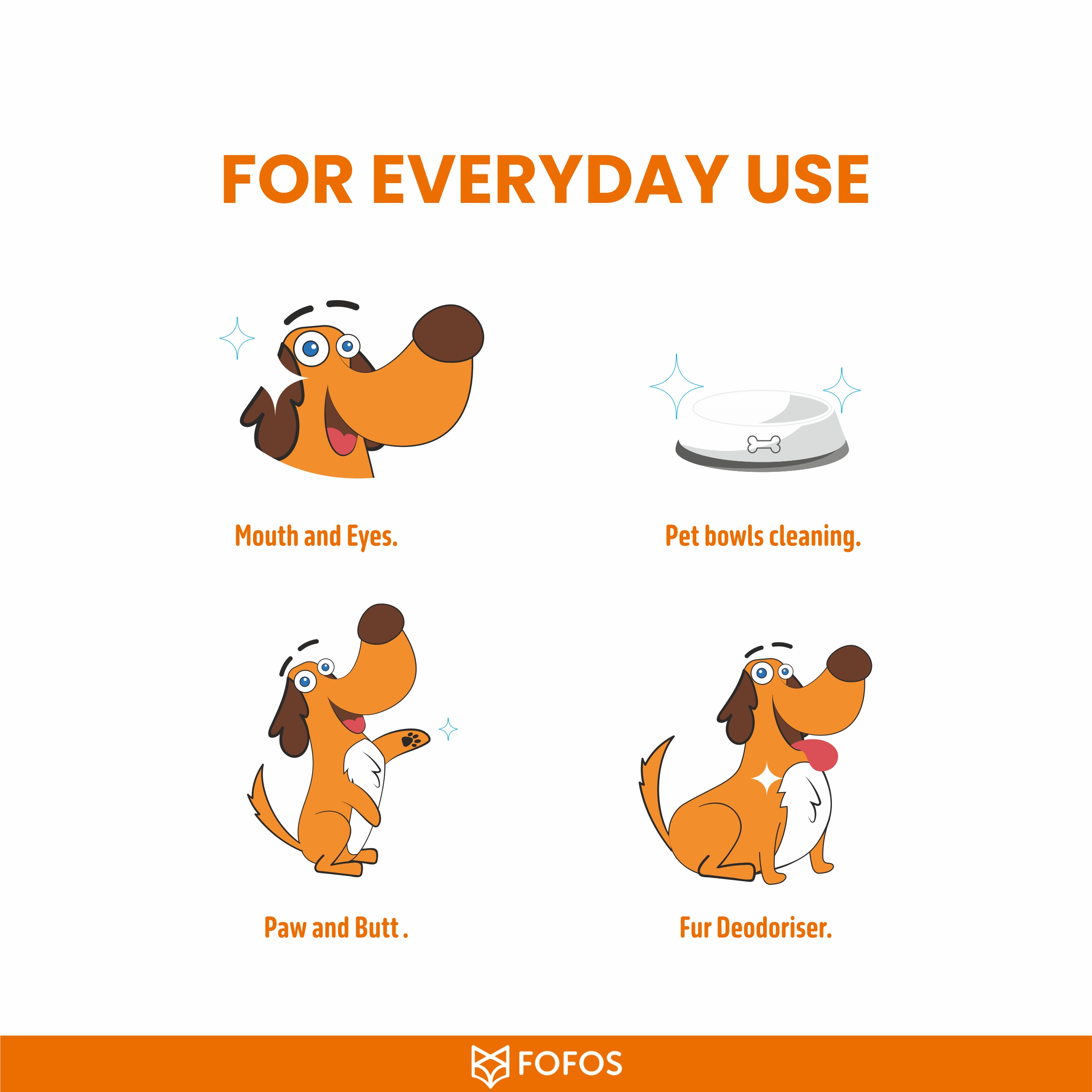 These dog cleaning wipes serve multiple purposes. The dog cleaning accessories include dog ear cleaner wipes, dog wipes for cleaning paws, eyes, mouth and butts. They can function as dog tissue wipe for food bowls, cat wipes for cleaning spillage, dogs ear cleaner, paw wipes for dogs, eye wipes for dogs, cat eye wipes or dog wipes for cleaning puppies. The unique ear cleaner dog solution provides excellent ear cleaning for dogs and keeps your pet’s ears clean and fresh. They are the perfect dog essentials that every pet owner should have.