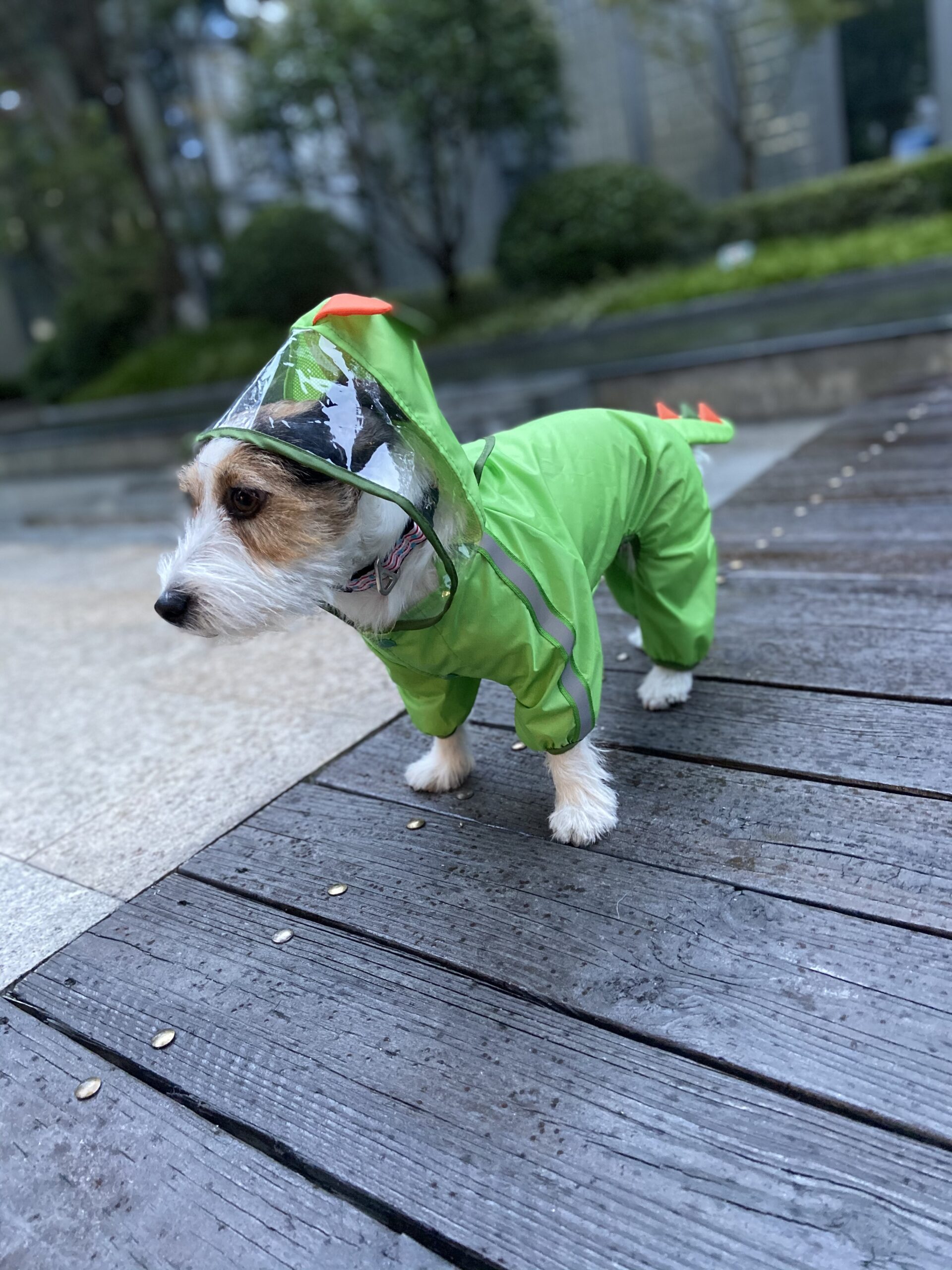 Made from lightweight, waterproof high-quality TPU material along with the mesh coating inside, this dog raincoat provides complete protection to your pet from the rain. A leash opening for easy access to take off or put on the leash with a cover that prevents water from entering. The reflective strip provides safety especially during walks or travel at night. The transparent hooded transparent design of this jacket provides complete head protection and visibility and the four-legged elastic cuffs coverings cover all 4 of your dog’s legs and prevent your dog from getting wet and splashed by the rain. The elastic fit & buttons help secure the raincoat & keep it in place and are easy to carry and convenient to travel with. To choose the right fit we recommend you measure your pet. This ensures that your pet is comfortable and has enough space while wearing the raincoat. Length measurements to be taken from base of hood to longest point on coat | S size fits pets 26cm in length| M size fits pets 32 cm in length | Large fits pets 42 cm in length | X-Large fits pets 48 cm in length. This raincoat is recommended for X large-sized dogs like labradors, golden retrievers, German shepherds, huskies etc