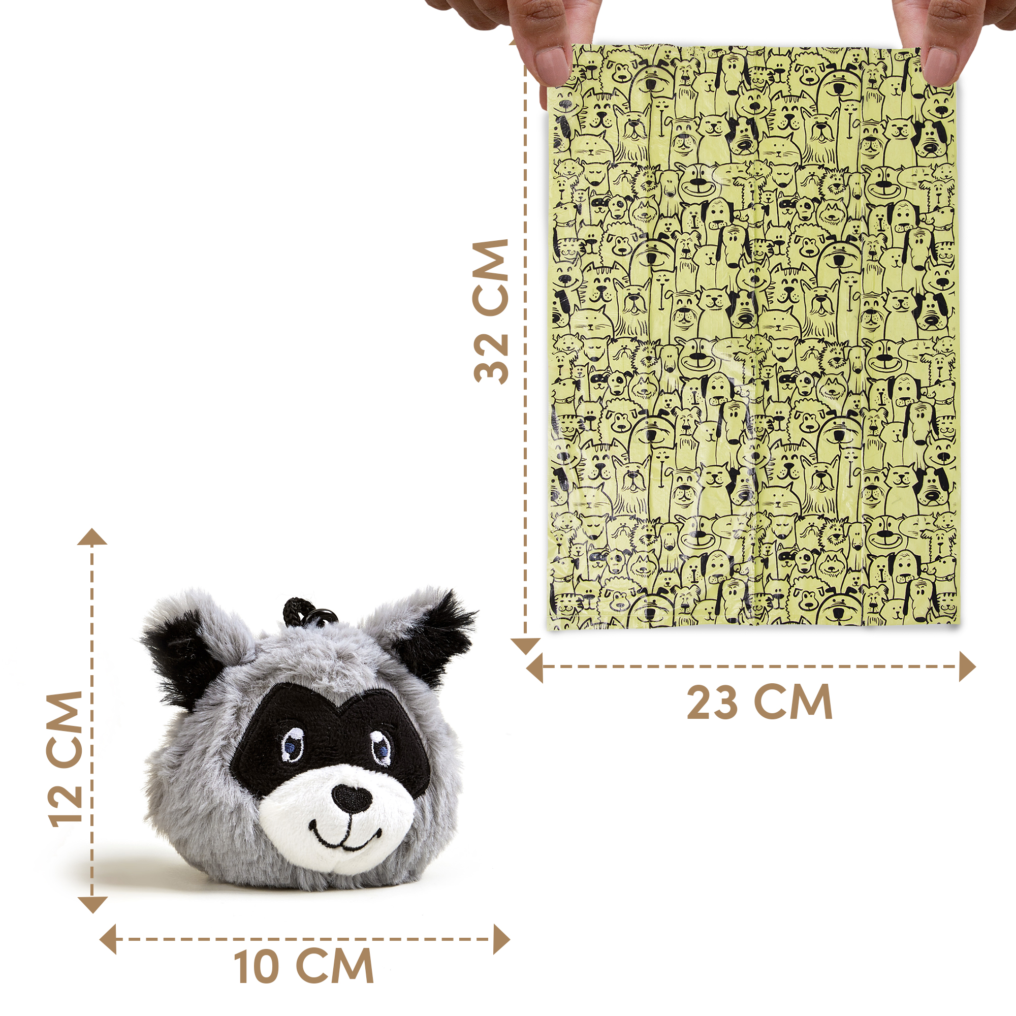 Introducing Barkbutler x Fofos Plush Poop Bag Dispenser / Holder racoon – an adorable and practical pet accessory for all dog breeds. This cute, soft racoon design not only makes dispensing poop bags a breeze, but also adds a touch of style to your daily walks. Easily clip the racoon dispenser onto your leash, collar, or bag for quick access. The leak-proof design ensures minimal wastage, while the bags tear effortlessly for added convenience. Each dispenser comes with a complimentary roll of 17 biodegradable poop bags, suitable for small-sized poop scoopers. The Barkbutler x Fofos dog potty solution is the ideal companion for every responsible pet parent, ensuring you always have a poop bag carrier handy when you need it most.