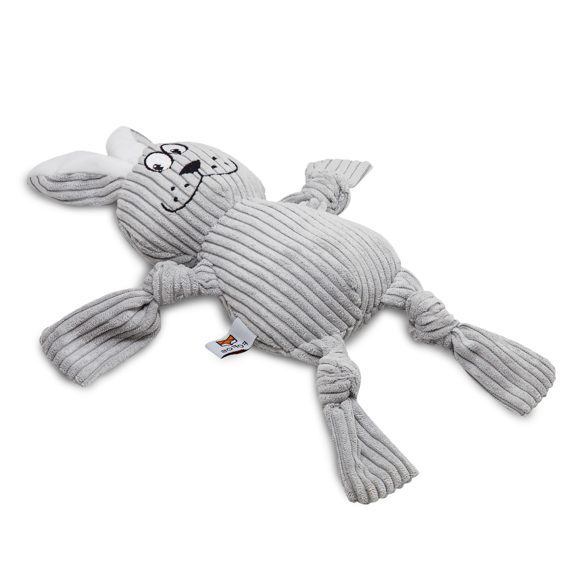 Fofos Ropeleg Plush Rabbit is a super soft plush dog toy with rope legs that make it perfect for a game of tug of war. This tug toy has a squeaker inside that generates a squeaky noise to make playtime engaging. This dog toy is made from soft polyester fabric + cotton rope legs and is machine washable. Interactive dog toys such as this allow your dog to chew, tug, fetch and bite on it while getting the right amount of exercise. This soft toy is ideal for small-medium dogs (5-20kg) of various breeds such as dachshund, pom, spitz etc.These toys are recommended for dogs who like to tug, snuggle, fetch and chew mildly. Not recommended for aggressive chewers.