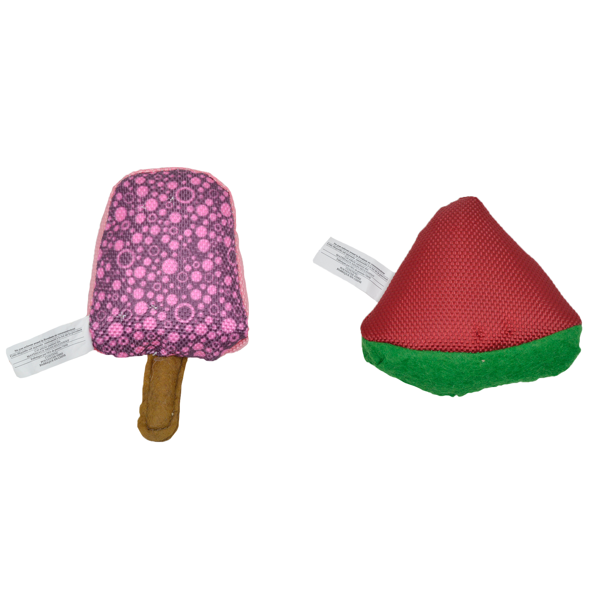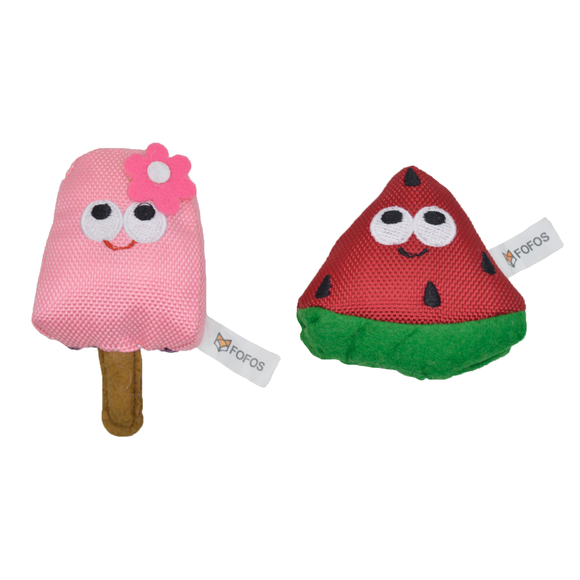 Catnip is a plant related to mint and contains an essential oil called nepetalactone that is known to cause euphoric, calming, and relaxing effects on cats. Catnip in small doses is completely safe, non-addictive for your kitten as the effects last about 10 mins for most cats. Fofos summer cat toys (Watermelon and Popsicle) are cute cat playing toys filled with imported US grade catnip dried leaves and grass powder. These Interactive toys allow your cat to chew, swat,nip, play, and even promote harmless biting and scratching. Fun engaging cat toys give your cat a mouse chase-like feeling ensuring good physical stimulation while the catnips give them a calm and relaxing experience. Ideal for small pet kittens above 6 months of age as well as for older cats of Persian and other breeds as well.