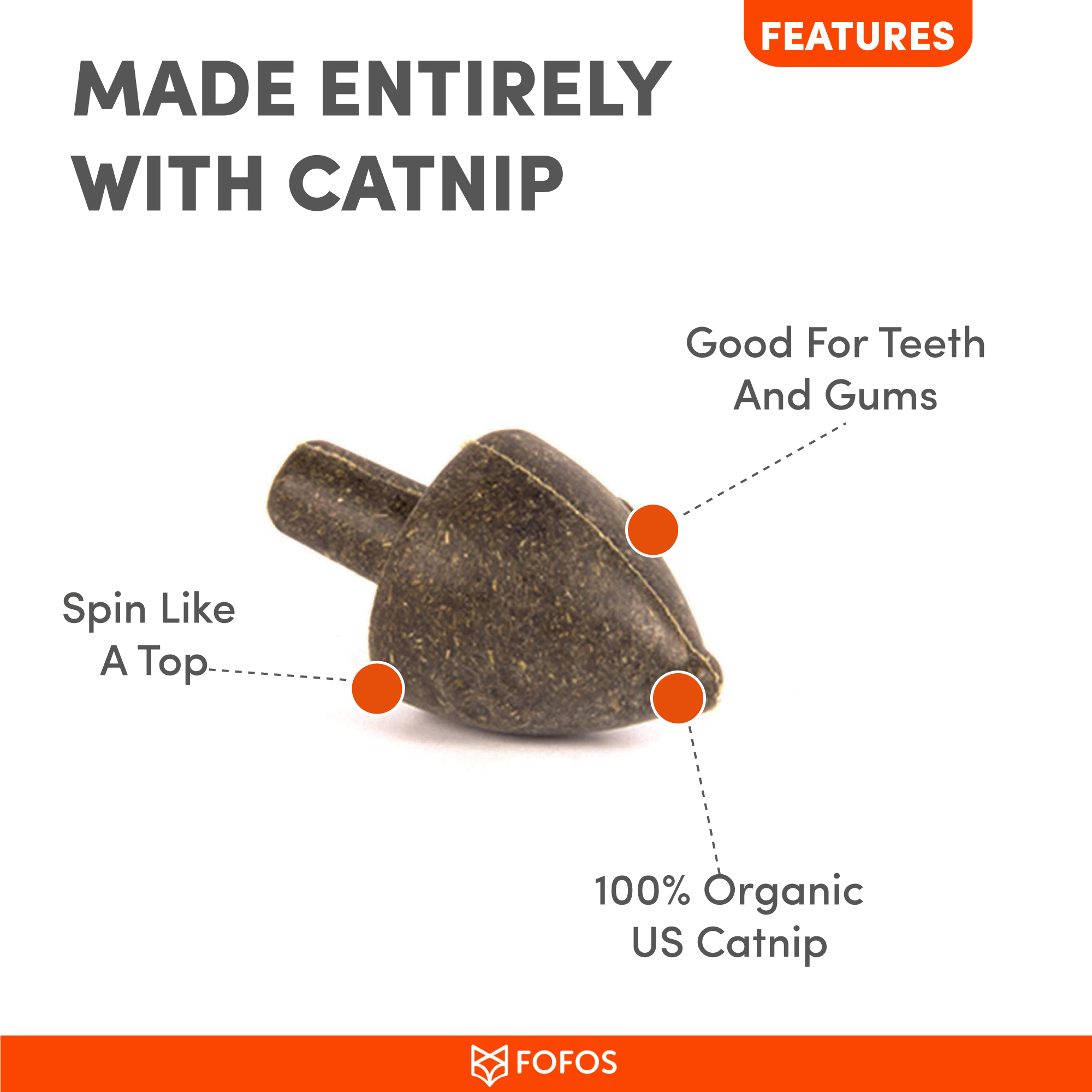Catnip is a plant related to mint and contains an essential oil called nepetalactone that is known to cause euphoric, calming, and relaxing effects on cats. Catnip in small doses is completely safe, non-addictive for your kitten as the effects last about 10 mins for most cats. Fofos super catnip spin is a cute cat playing toy made entirely out of imported US grade catnip dried leaves and grass powder. This long-lasting catnip lollipop like toy allows your cat to chew, swat, nip, play,and even promotes harmless biting and scratching while maintaining dental hygiene. Fun engaging cat toys give your cat a mouse chase-like feeling ensuring good physical stimulation while the catnips give them a calm and relaxing experience. Ideal for small pet kittens above 6 months of age as well as for older cats of Persian and other breeds as well.