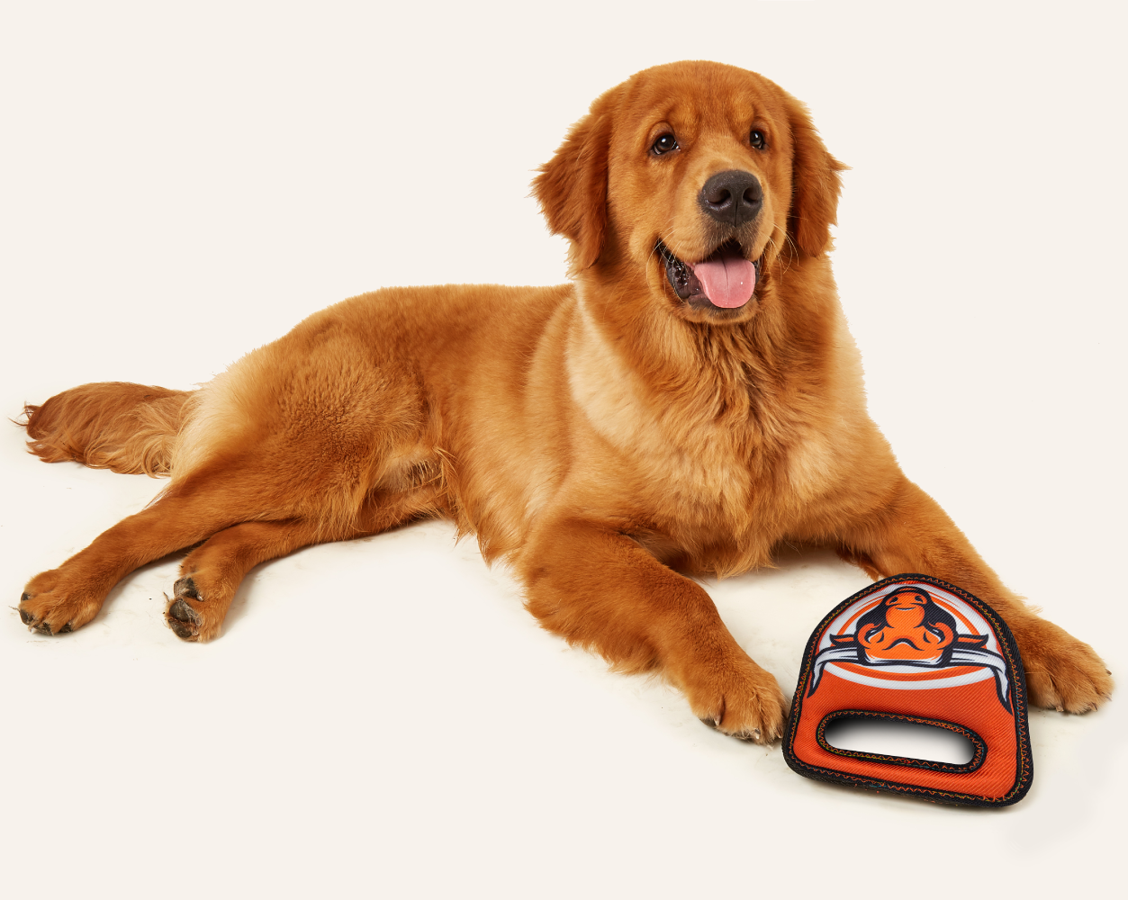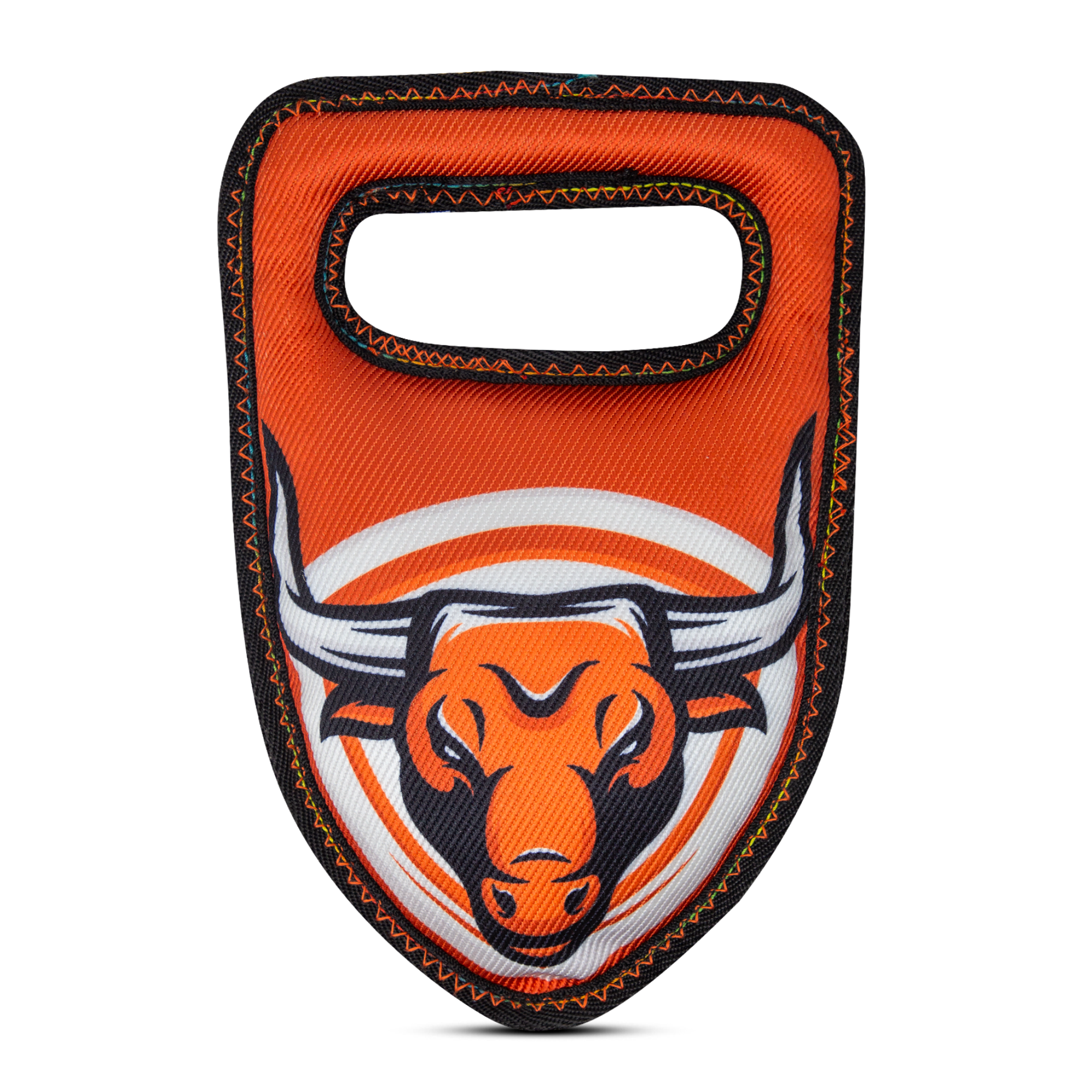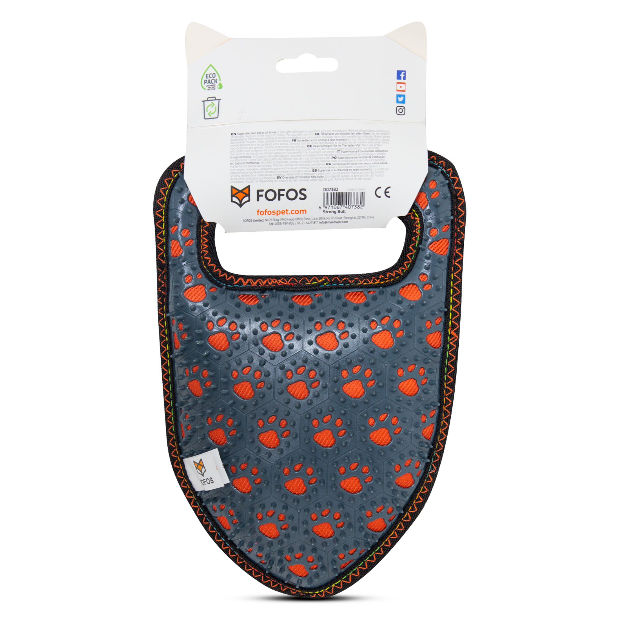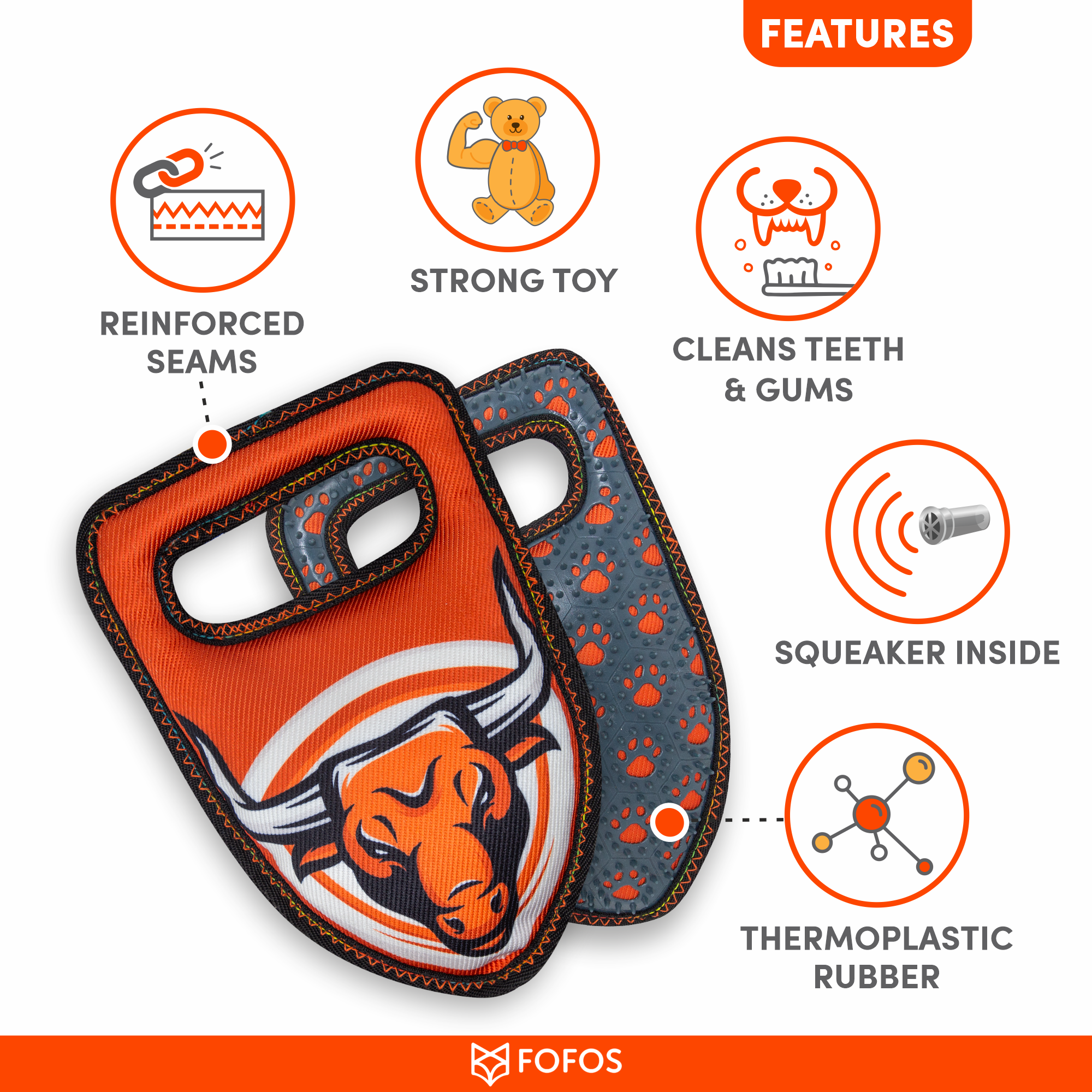 Fofos strong bull is a stuffed plush tug toy with reinforced seams to increase resistance.This dog toy has a squeaker inside that makes a squeaky noise every time your pet interacts with it and also helps clean the teeth and gums. It is made from a combination of strong fabric + TPR. Interactive dog toys such as this allow your dog to chew, fetch tug, and bite on it while getting the right amount of exercise. This soft toy is ideal for medium-large dogs (10-30kg) of various breeds such as dachshund, pom, labrador, st. Bernard etc. This toy is strong but not indestructible and is best suited for pet dogs that have aggressive chewing, fetching and tug playing styles. Not recommended for aggressive chewers.