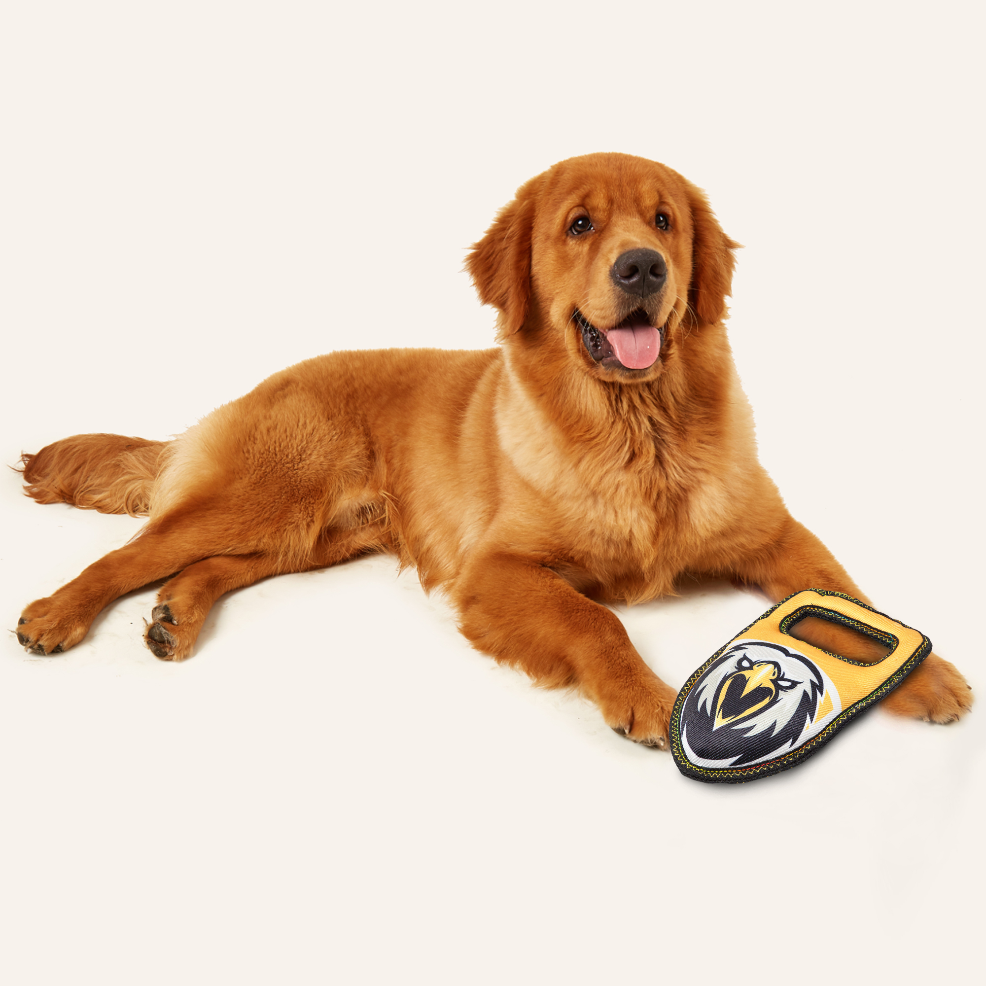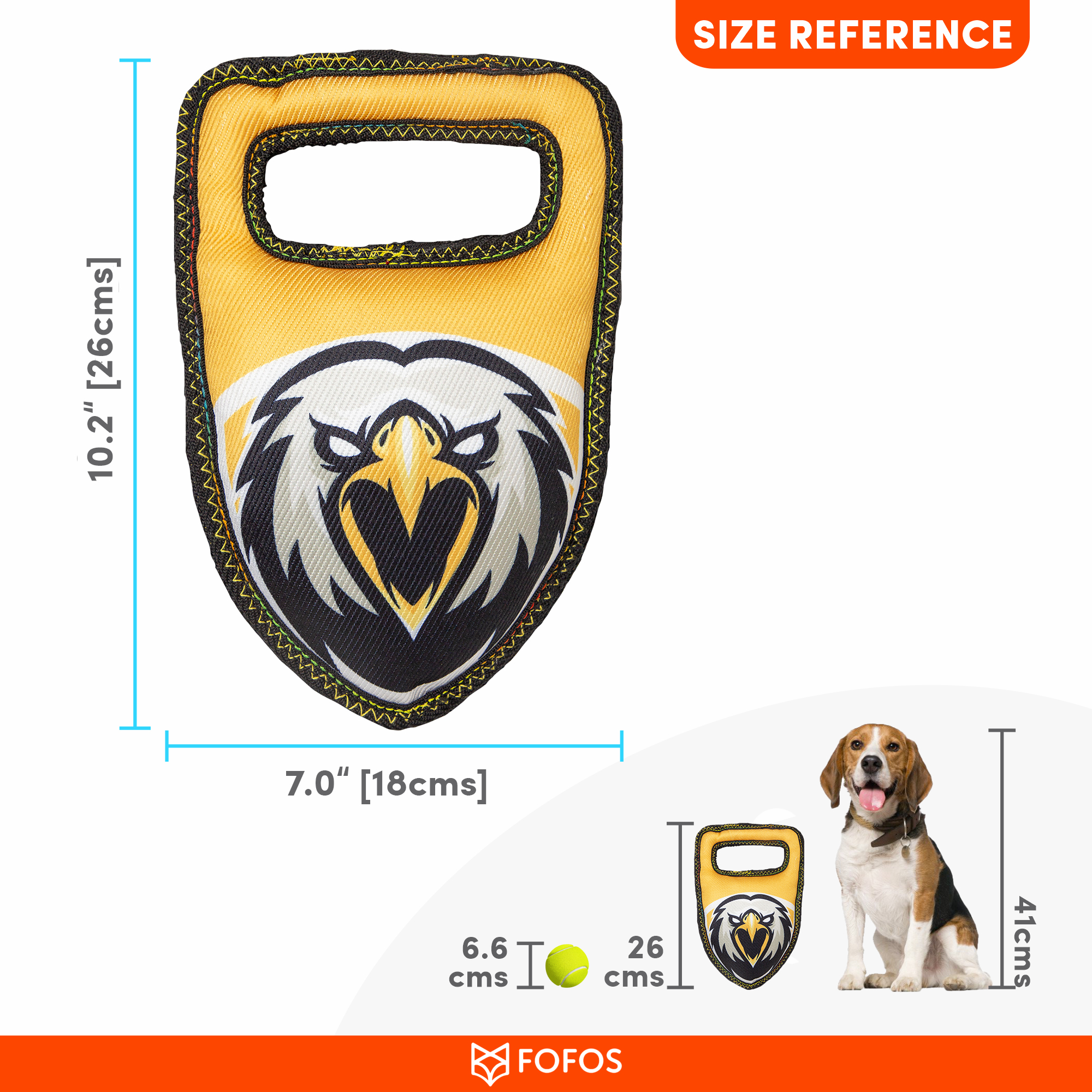 Fofos strong eagle is a stuffed plush tug toy with reinforced seams to increase resistance.This dog toy has a squeaker inside that makes a squeaky noise every time your pet interacts with it and also helps clean the teeth and gums. It is made from a combination of strong fabric + TPR. Interactive dog toys such as this allow your dog to chew, fetch tug, and bite on it while getting the right amount of exercise. This soft toy is ideal for medium-large dogs (10-30kg) of various breeds such as dachshund, pom, labrador, st. Bernard etc. This toy is strong but not indestructible and is best suited for pet dogs that have aggressive chewing, fetching and tug playing styles. Not recommended for aggressive chewers.