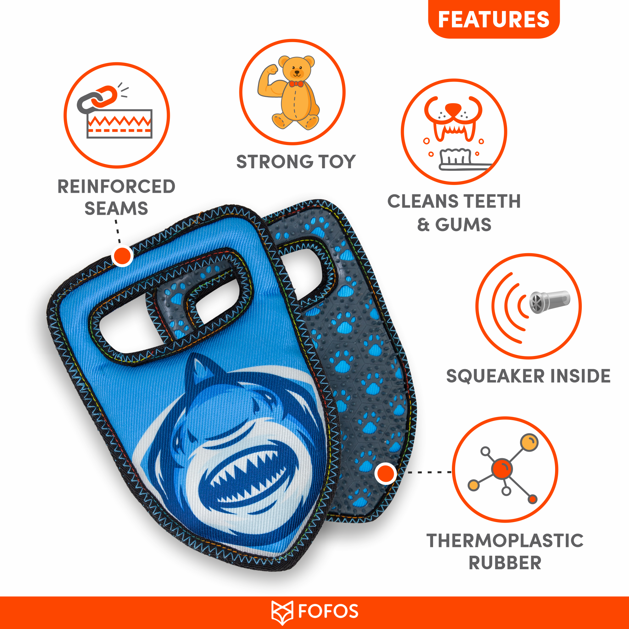 Fofos strong leopard is a stuffed plush tug toy with reinforced seams to increase resistance.This dog toy has a squeaker inside that makes a squeaky noise every time your pet interacts with it and also helps clean the teeth and gums. It is made from a combination of strong fabric + TPR. Interactive dog toys such as this allow your dog to chew, fetch tug, and bite on it while getting the right amount of exercise. This soft toy is ideal for medium-large dogs (10-30kg) of various breeds such as dachshund, pom, labrador, st. Bernard etc . This toy is strong but not indestructible and is best suited for pet dogs that have aggressive chewing, fetching and tug playing styles. Not recommended for aggressive chewers.